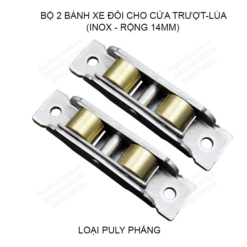 Bộ 2 bánh xe đôi cho cửa trượt-cửa lùa bằng inox không gỉ, dùng cho cửa nhựa, nhôm, thép