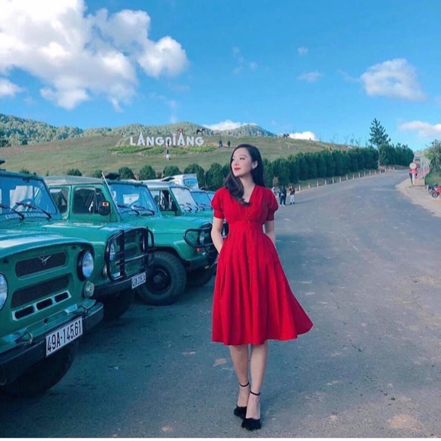 Váy xoè cổ tim