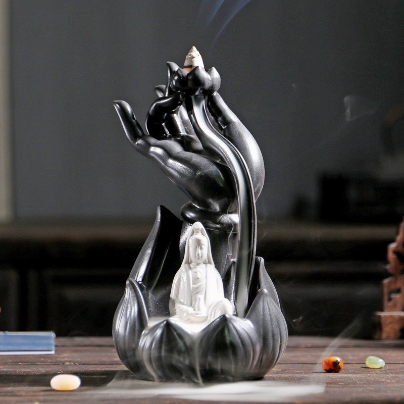 [Nhiều mẫu] Thác khói trầm hương để bàn phật như lai quan âm tọa thiền tặng 3 nụ trầm