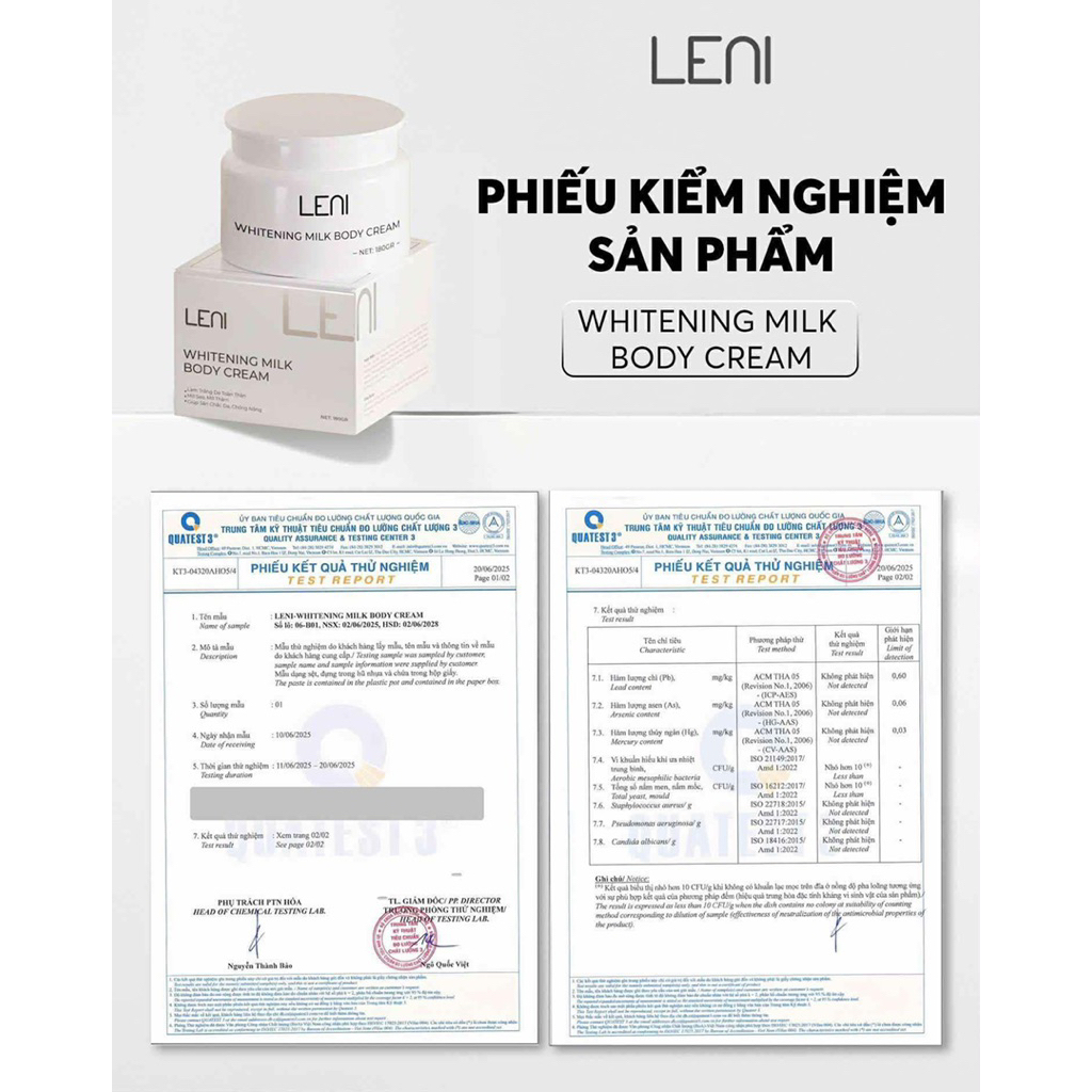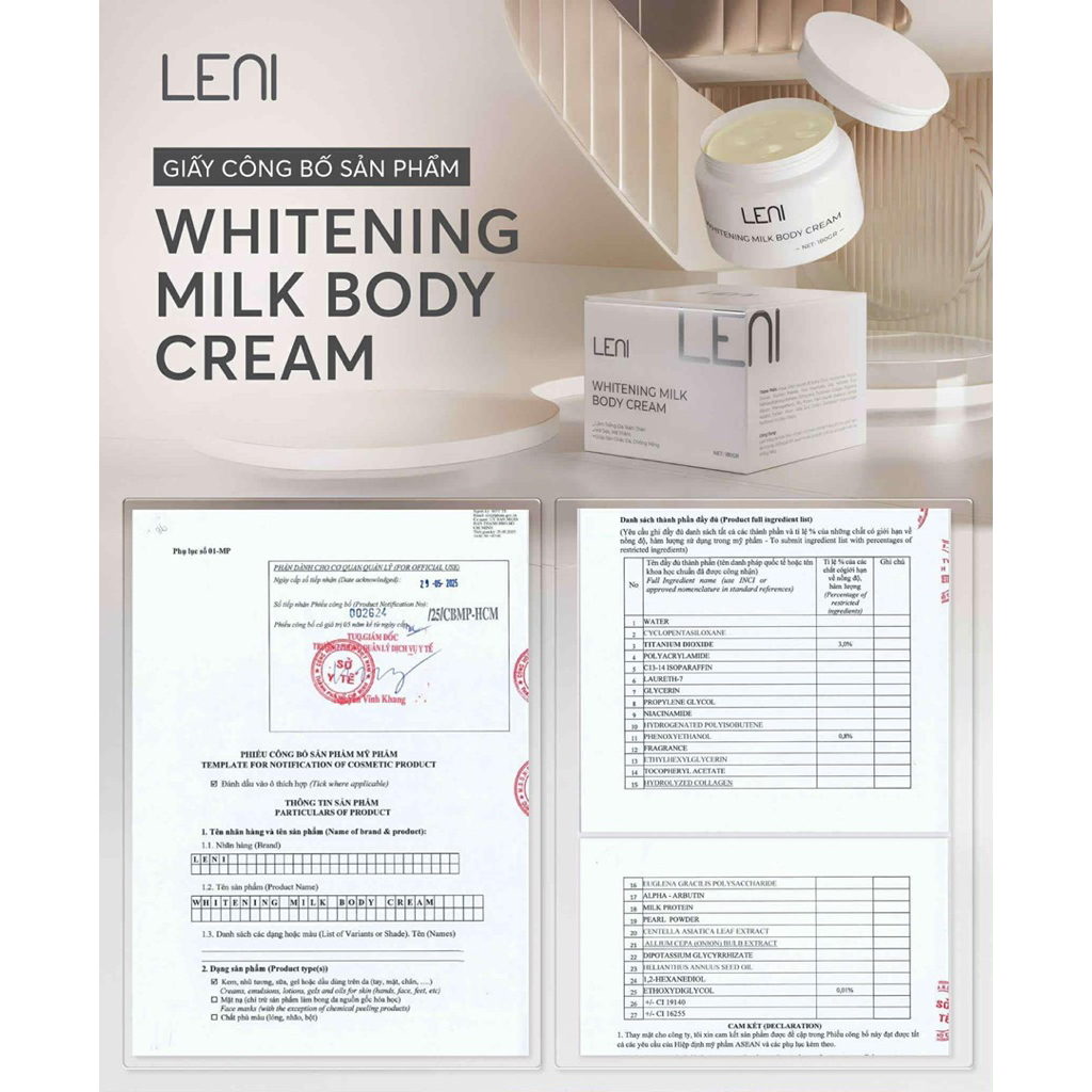 (KEM LENI CHÍNH HÃNG)(TẶNG KÈM 1 TẨY TBC & Oil Test 10ML) COMBO 2 KEM BODY VÁNG SỮA LENI dưỡng trắng da body