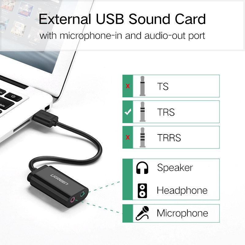 Card âm thanh UGREEN Bộ chuyển đổi USB 3,5mm bên ngoài sang loa micro Âm thanh cho PC