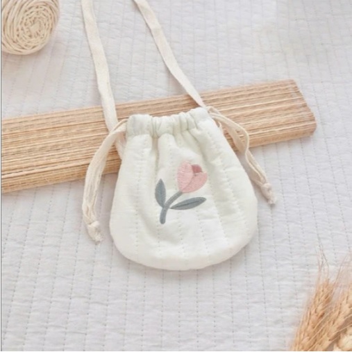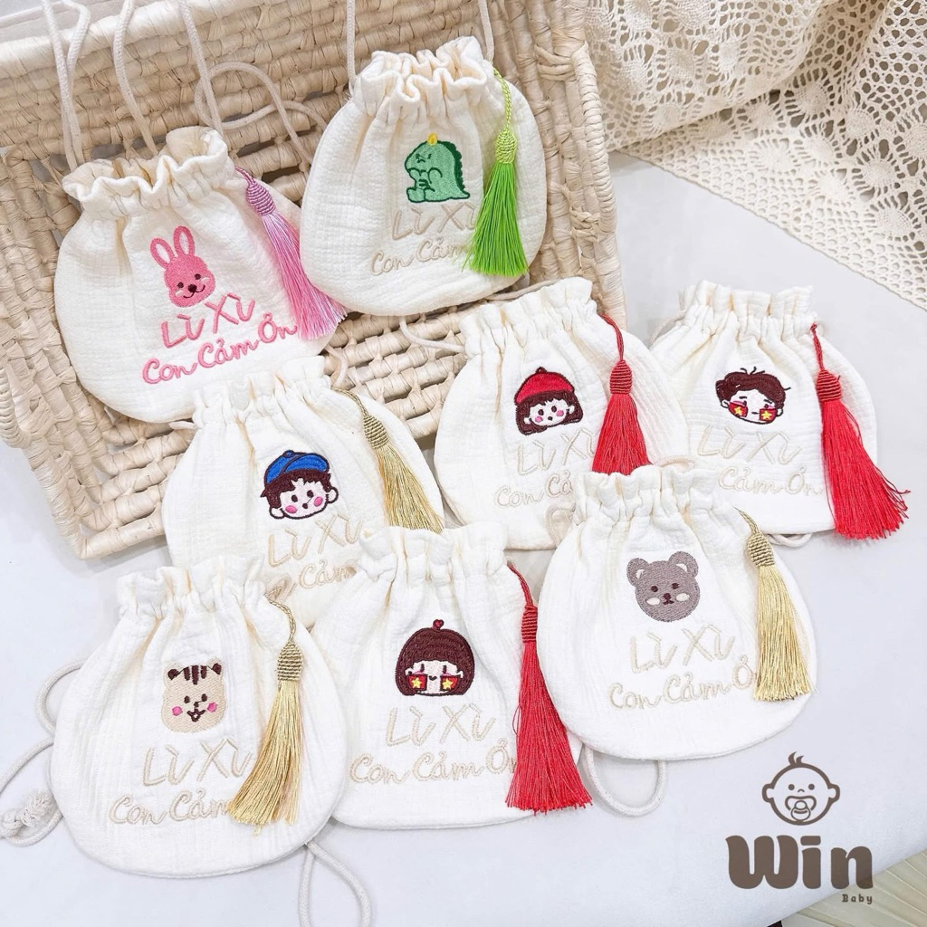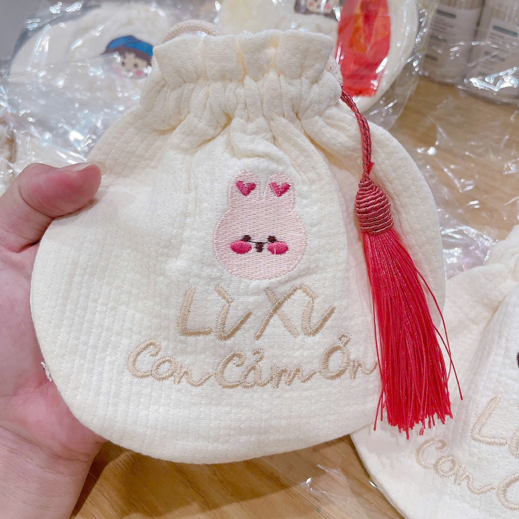 Túi mini thêu hình HQ đựng tỏi, lì xì có quai đeo cho bé