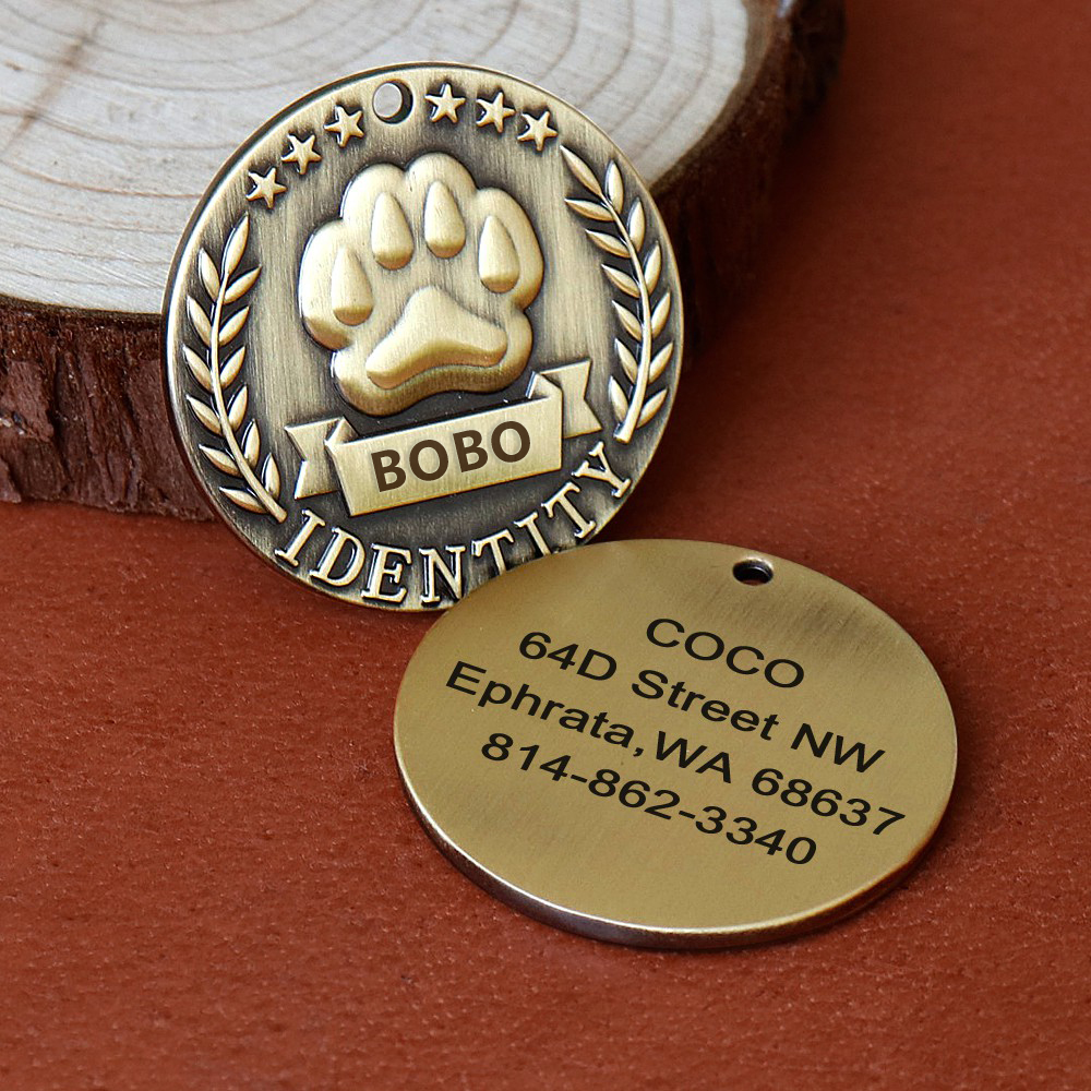 Thẻ id Bằng Kim Loại Khắc laser Chống Thất Lạc Cỡ Vừa Và Lớn Cho Thú Cưng