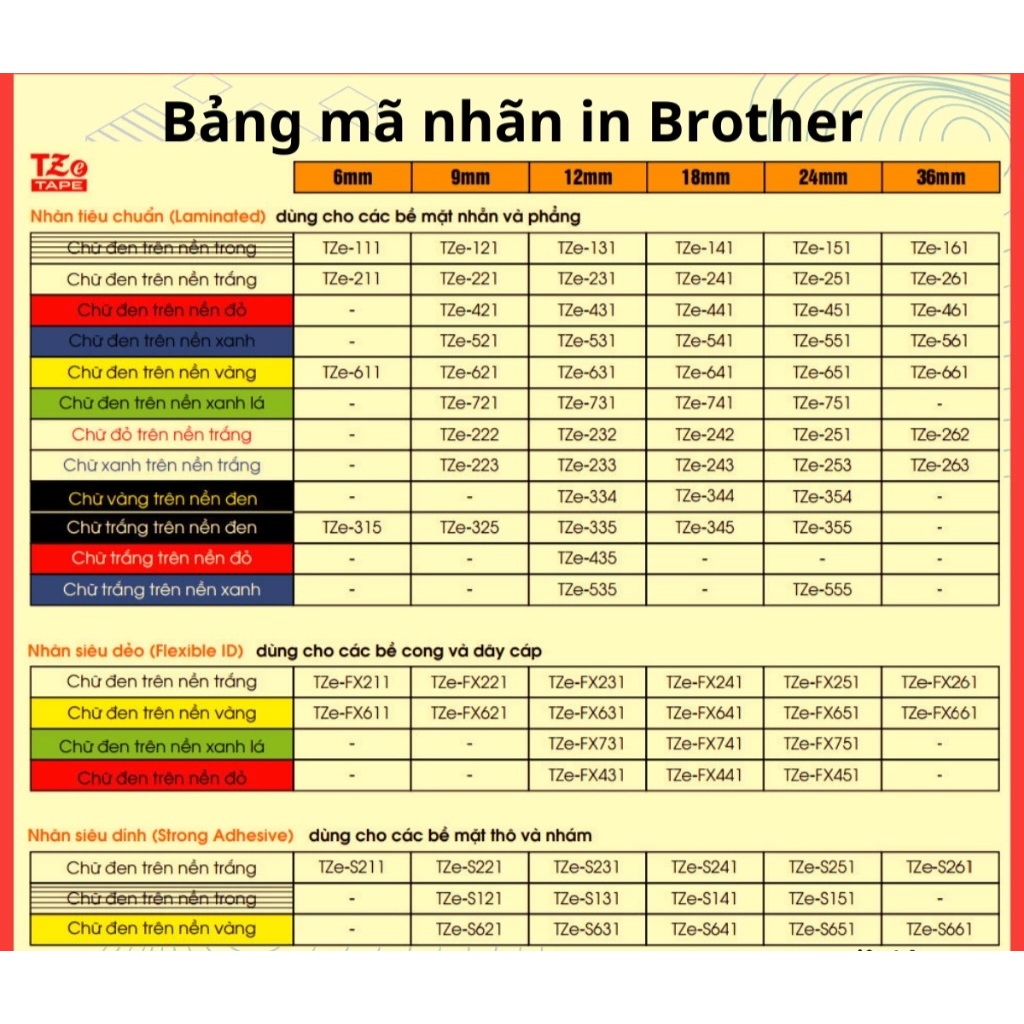 Nhãn siêu dính Brother TZE-S211 chữ đen ,nền trắng khổ 6mm
