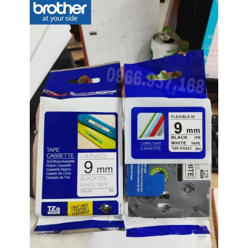 Nhãn in Brother TZF-FX421 Dài 8m , khổ 9mm Chữ đen trên nền đỏ