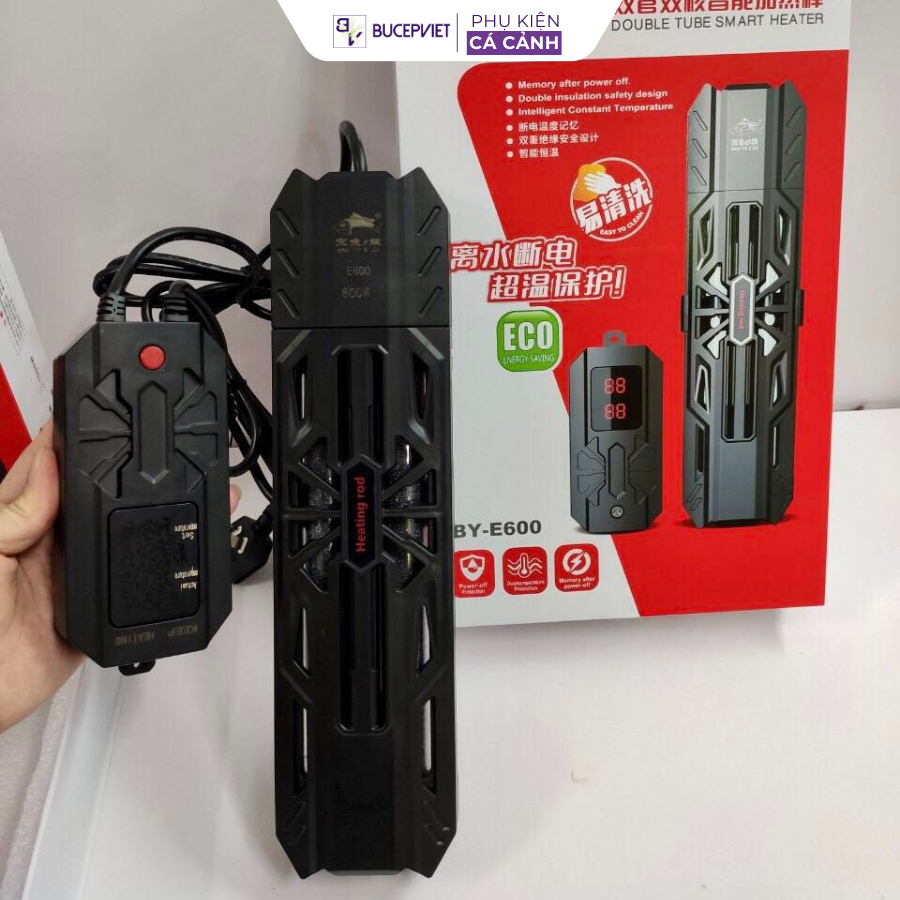 Máy sưởi bể cá Baoyu BY-E600 (600W-1500W) – Kéo nhiệt nhanh, an toàn, tự ngắt (BH 6 tháng)
