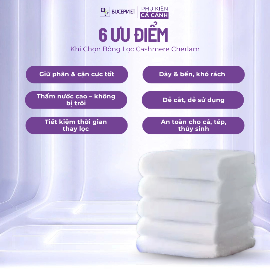 Bông Lọc Aqualux Cashmere Cho Bể Cá – Giữ Phân Cá, Bụi Bẩn Tốt, Thấm Nước Cao, Lọc Nước Sạch, Dày Bền (220x30cm)