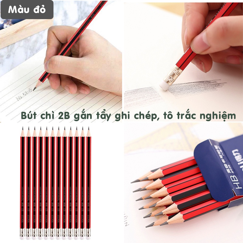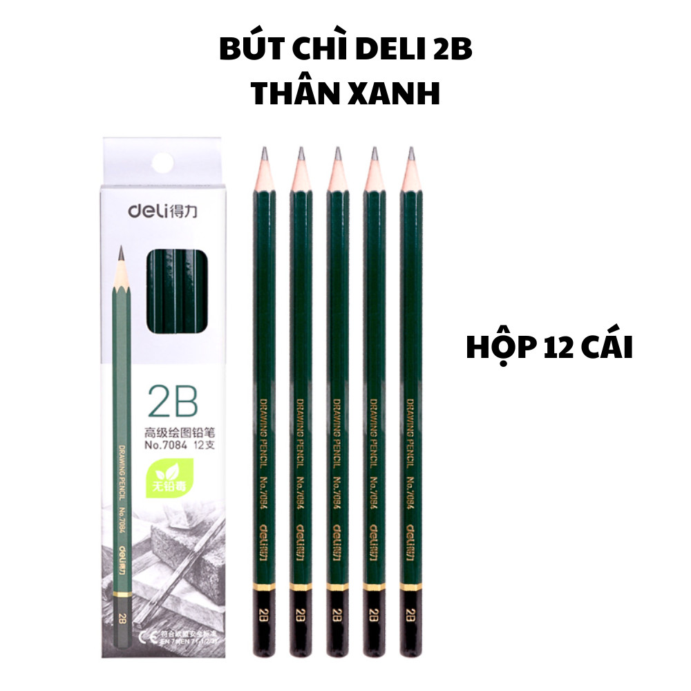 Bút chì 2B Deli ngòi nét đậm tô trắc nghiệm tiện lợi, Bút chì Deli kèm tẩy ghi chép bài thi,mỹ thuật