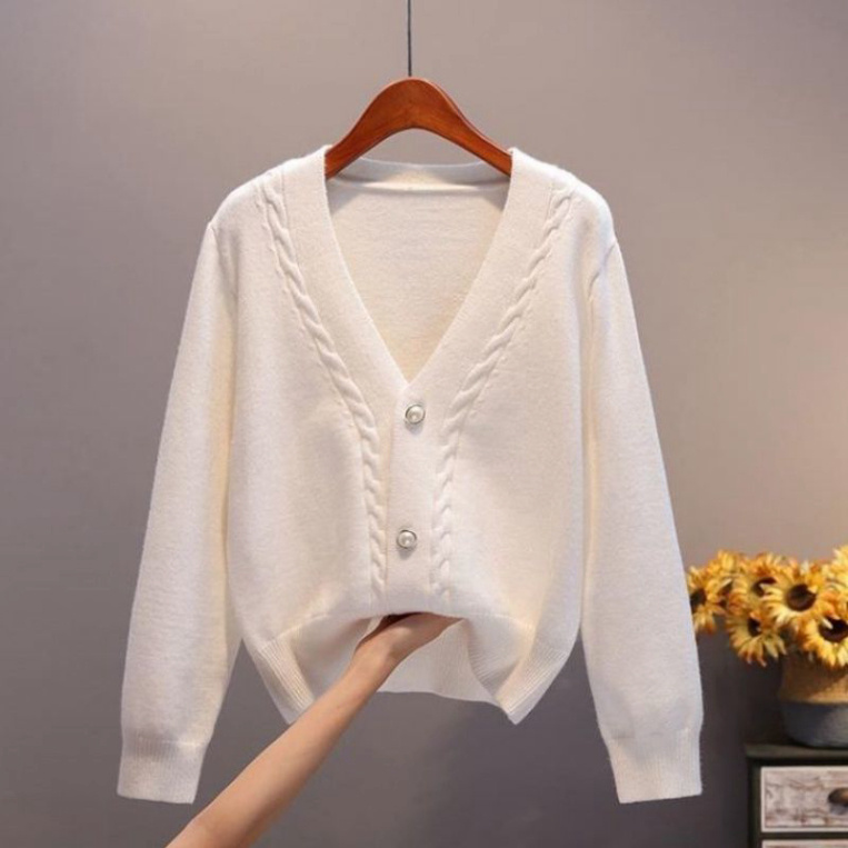 Áo khoác cardigan ngắn cổ V dáng rộng màu trơn thời trang Hàn Quốc - Hàng mới về