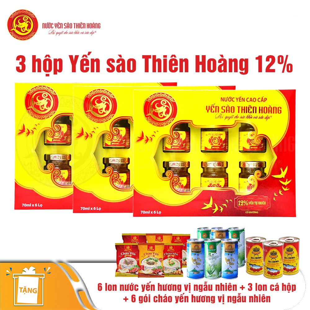 3 Hộp Yến Sào Thiên Hoàng 12% (6 lọ/hộp) - Tặng 6 lon yến+6 gói cháo yến+3 lon cá hộp