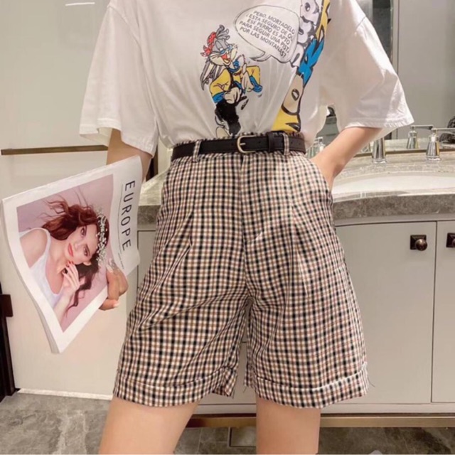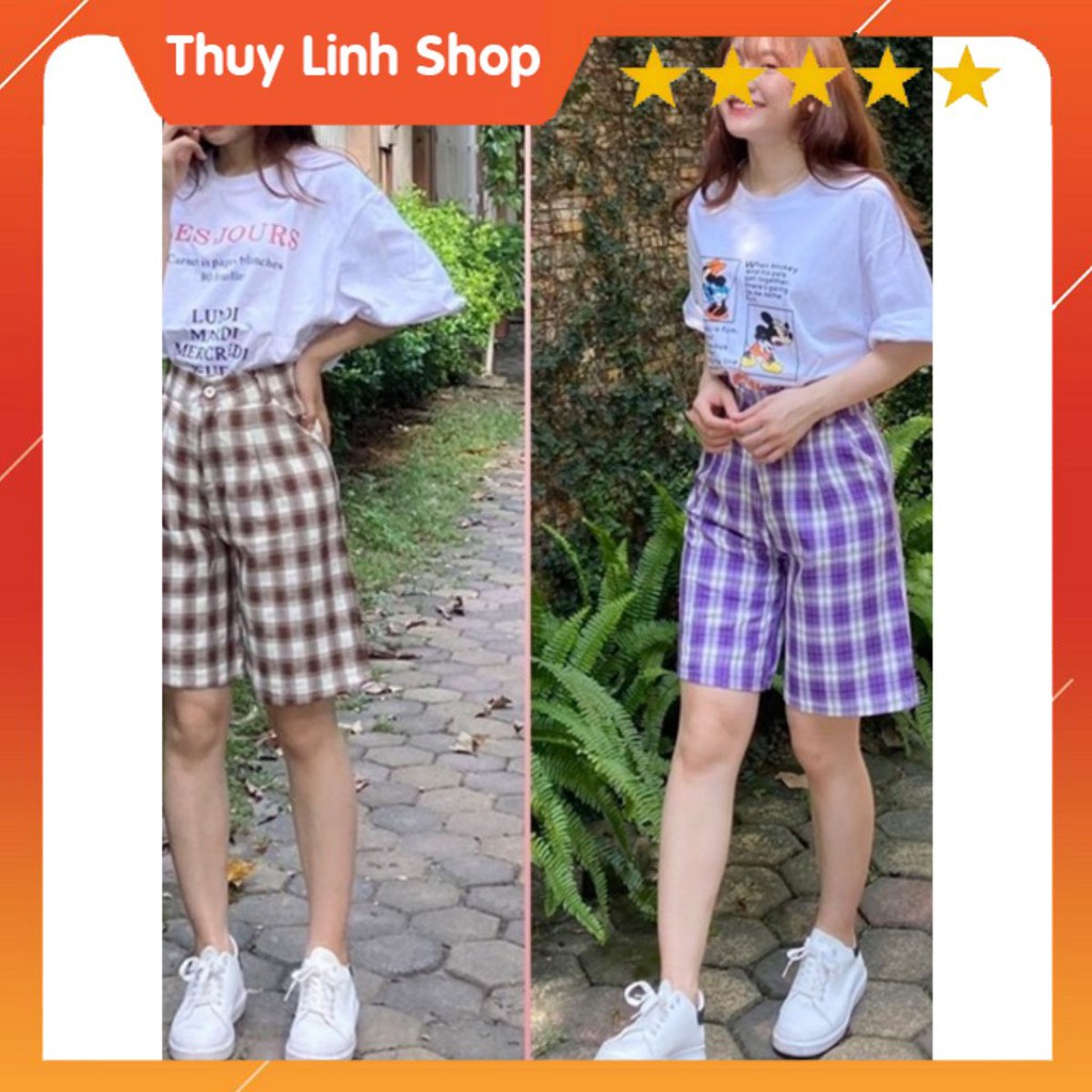 Quần Ngố Ống Rộng Caro Nữ [Thùy Linh Shop]