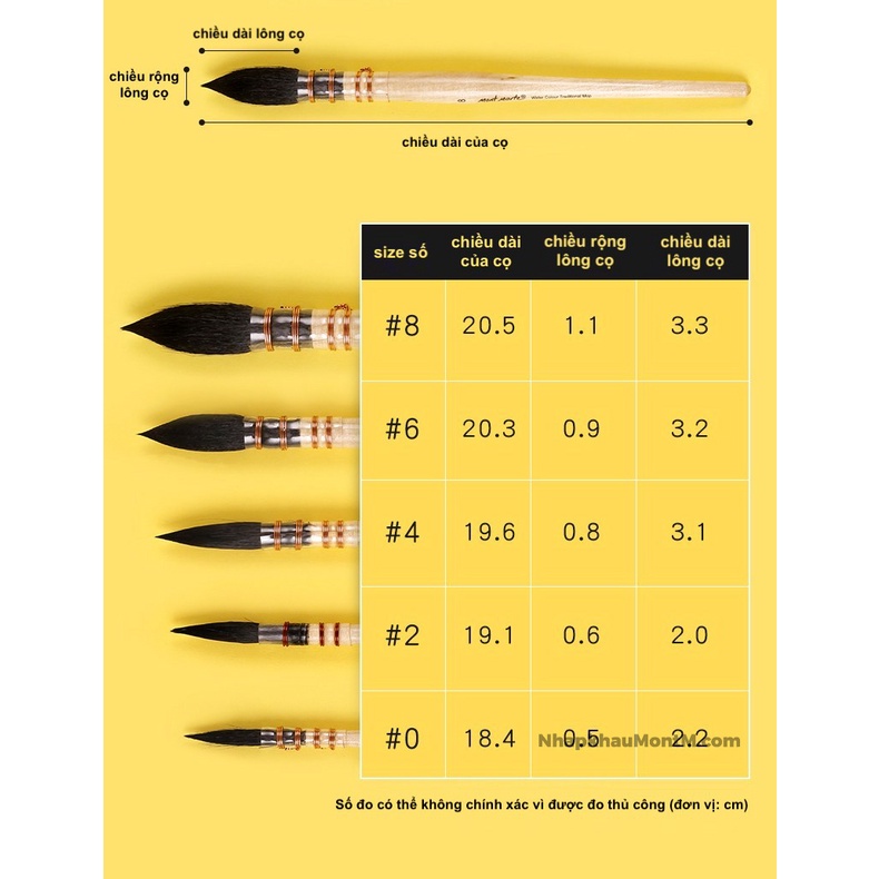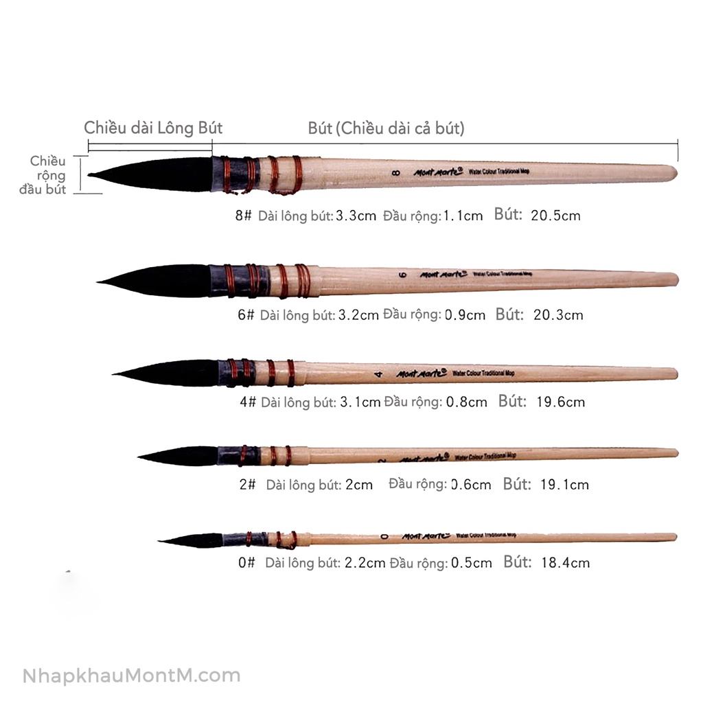 Cọ Mop Vẽ Màu Nước Lông Chồn Cao Cấp Mont Marte | Water Colour Traditional Mop