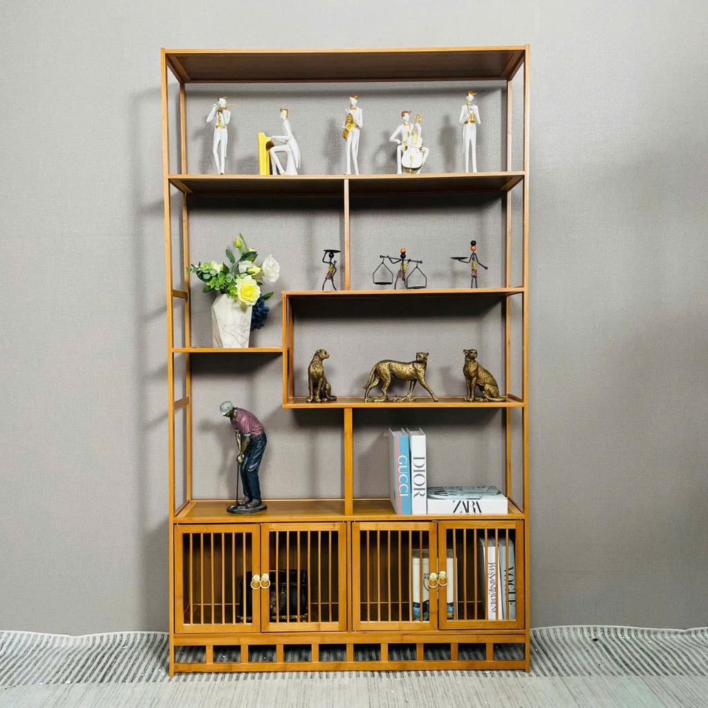 Kệ sách để đồ nhiều ngăn , kệ bằng gỗ tre trưng bày 6 tầng có ngăn kéo - giá trưng bày phòng khách