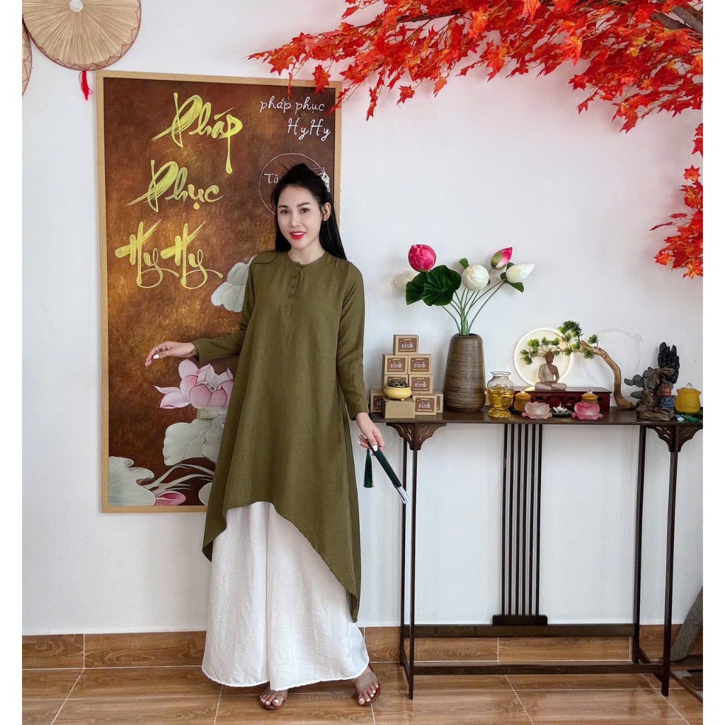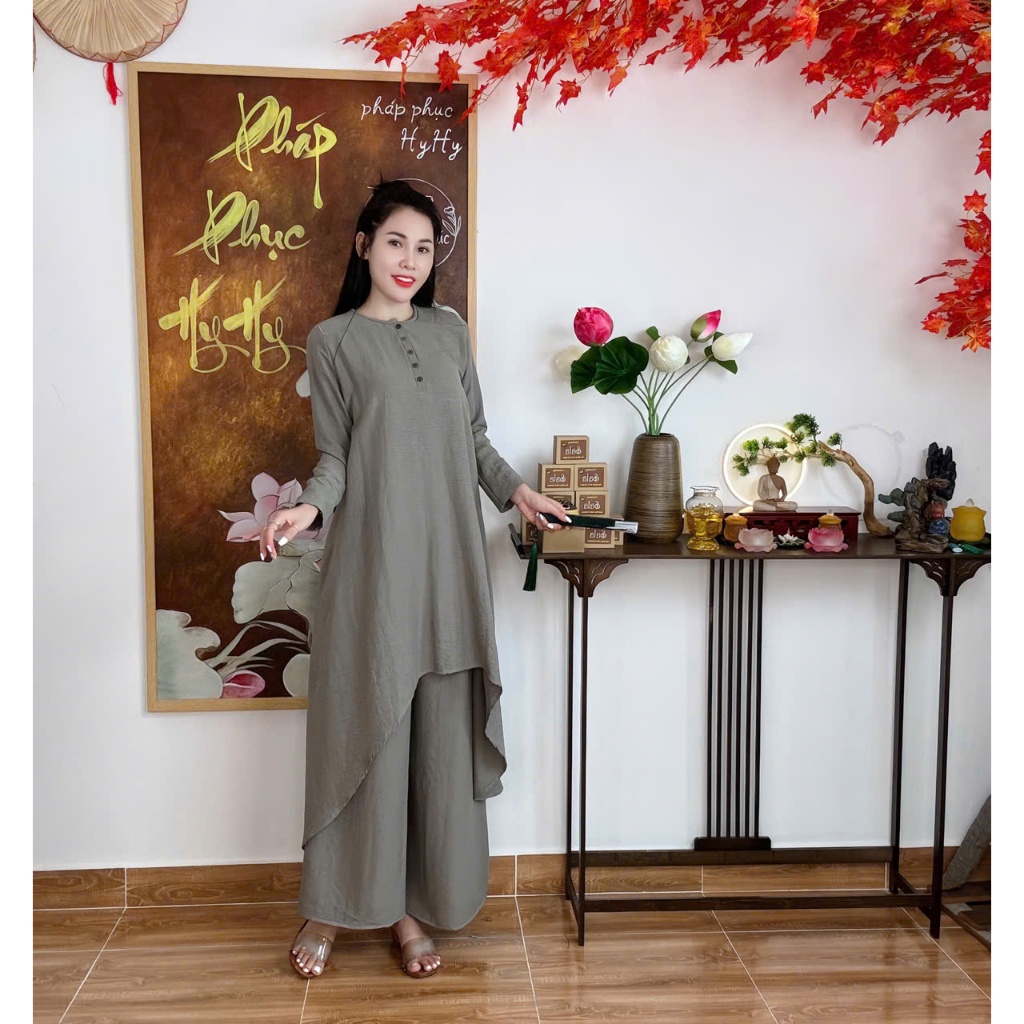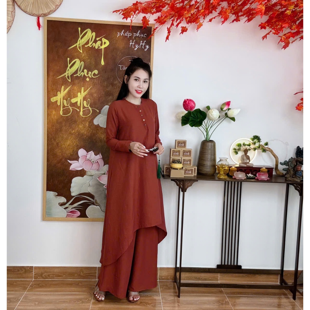 Tịnh Nhiên - Bộ Pháp Phục Lễ Chùa Cổ Tròn Dáng Dài Sang Trọng-HyHy