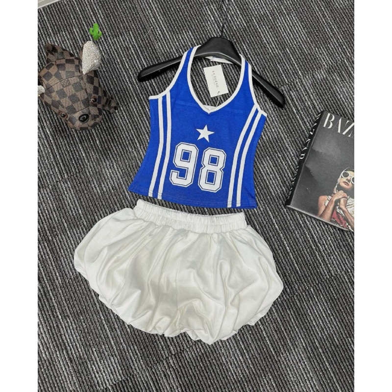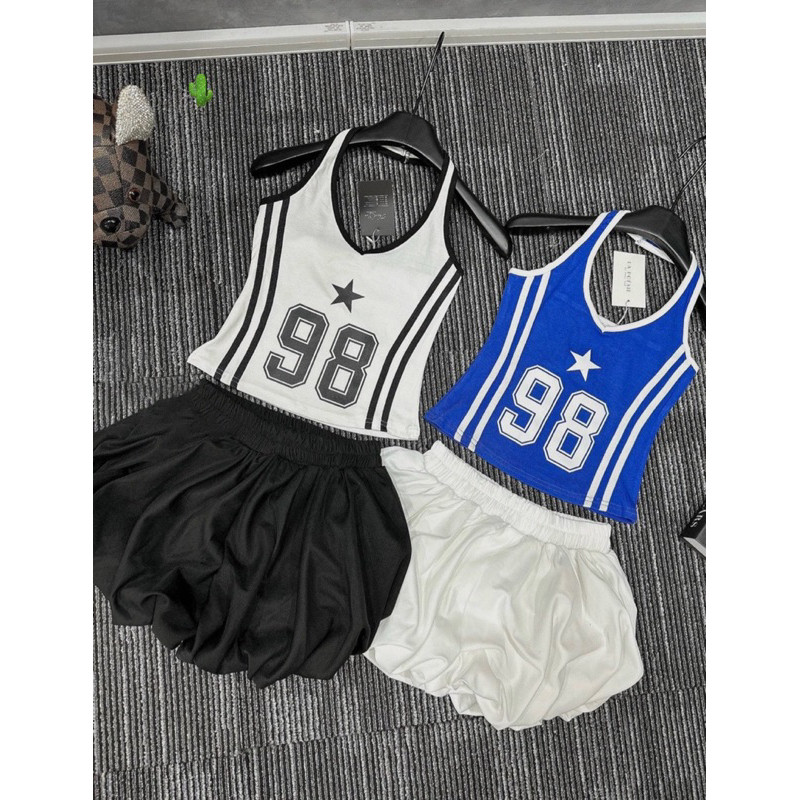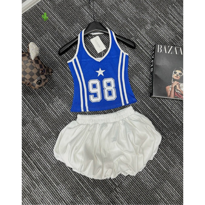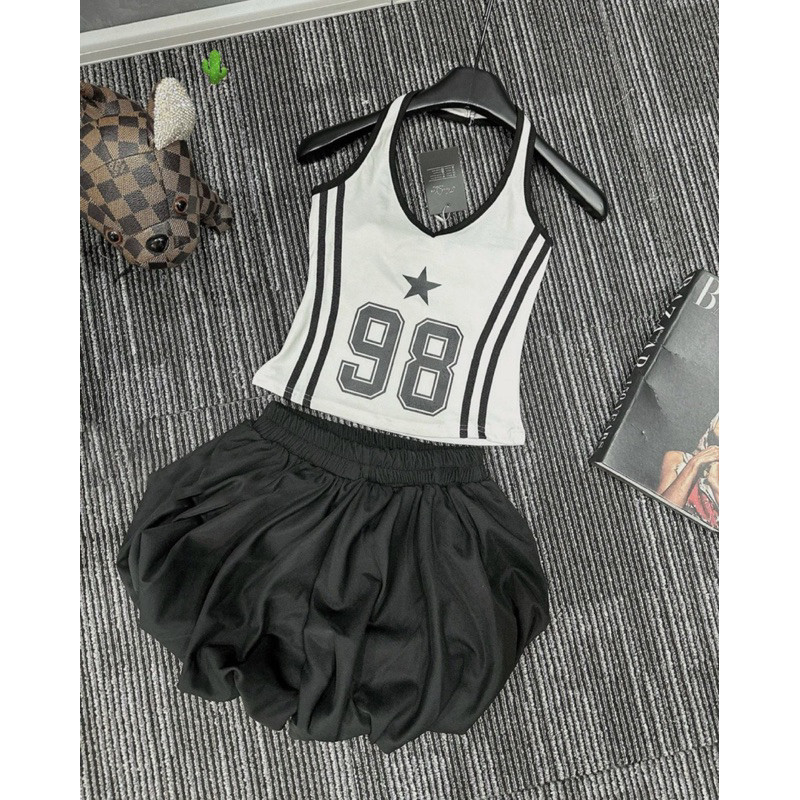 Set áo yếm 98 kèm chân váy bí phồng đen trắngvề 2 màu như hình, set yếm tròng cổ phối quần bí siêu cute alohastore1