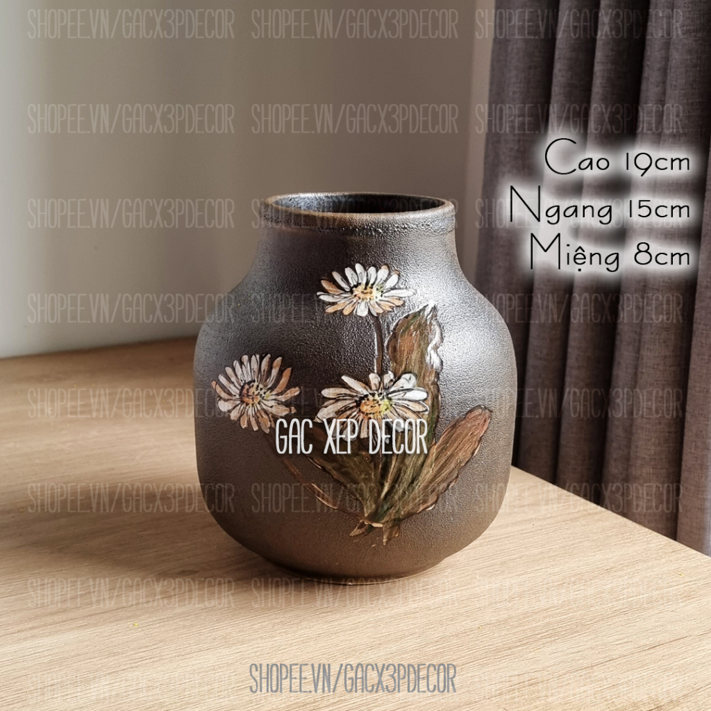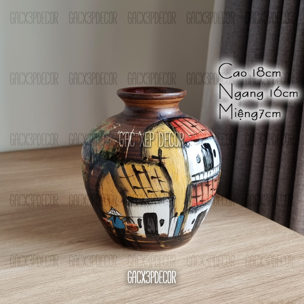 Lọ hoa gốm sứ vẽ tay men mộc Bát Tràng