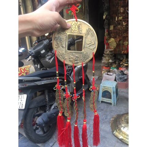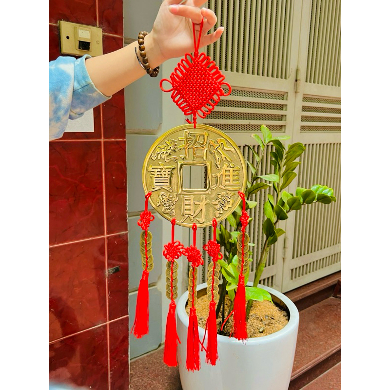 Đồng Xu Chiêu Tai Trân Trạch Cỡ Đại bằng đồng xâu dây tiền ngũ đế phong thủy tài lộc