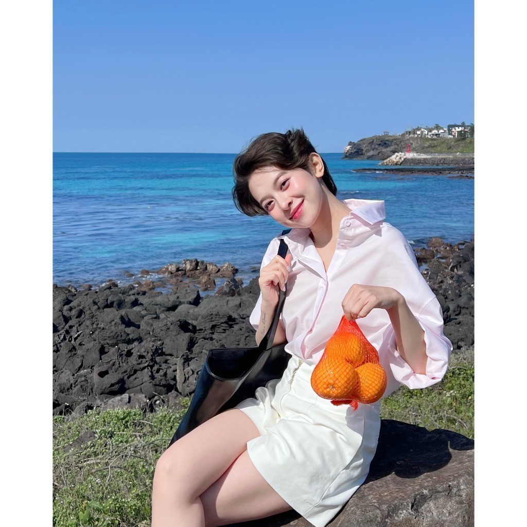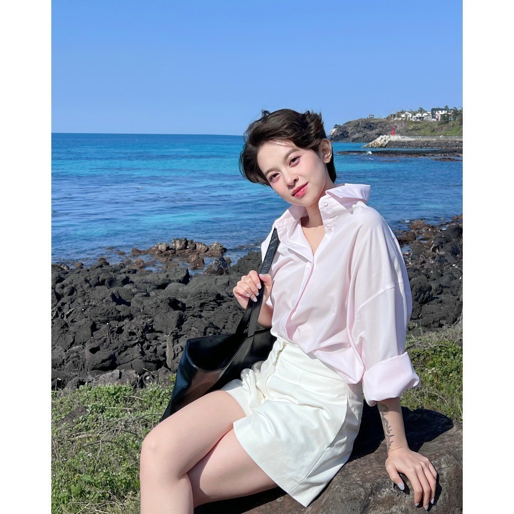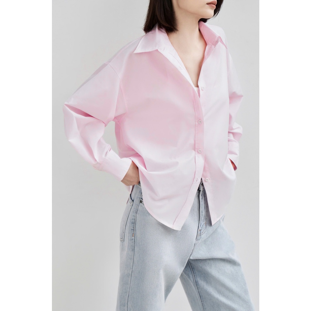 Áo sơ mi nữ GILLEE dáng oversized, sơ mi form rộng vải kate Mỹ Hồng pastel chống nhăn tốt FAS293