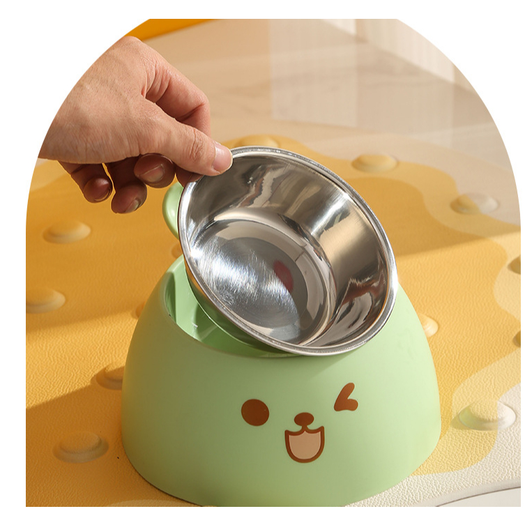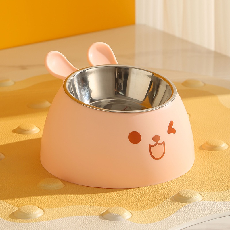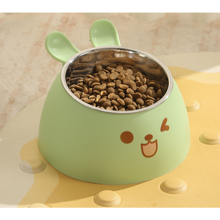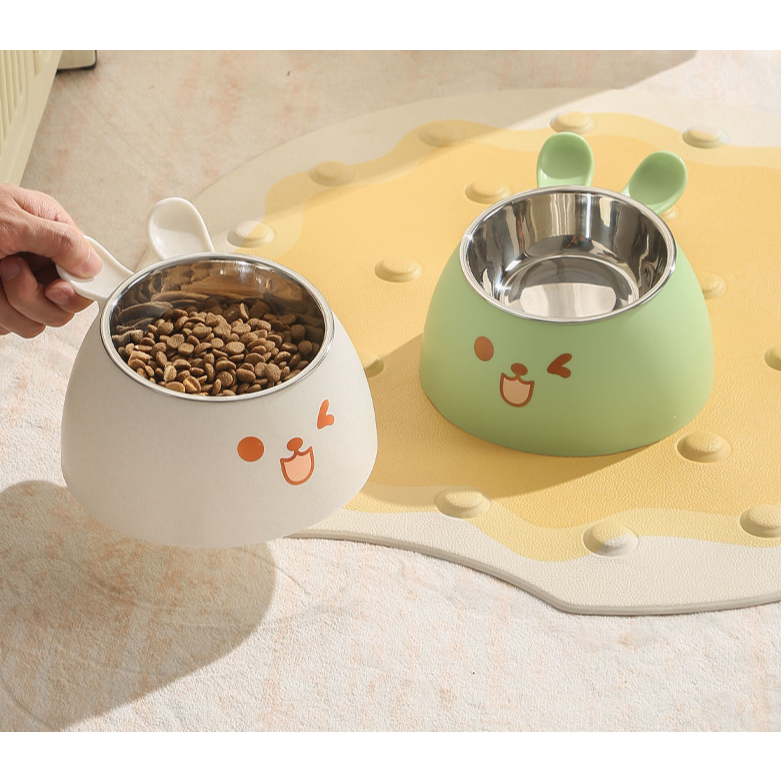 Bát/Chén Ăn Chống Gù Hình Tai Thỏ Cho Chó Mèo Ruột Inox Có Thể Tháo Rời Chống Trượt, An Toàn, Dễ Chùi Rửa