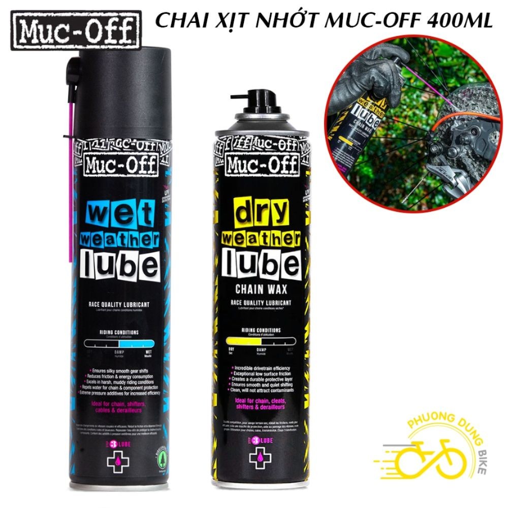 Chai xịt nhớt bôi trơn xích líp xe đạp MUC-OFF DRY LUBE / WET WEATHER LUBE 400ml