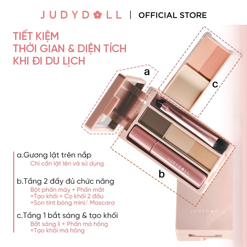 Bảng Phấn Trang Điểm Cầm Tay JUDYDOLL Mini Makeup Palette Đa năng Nhỏ gọn Phấn mắt Kẻ mắt Chân mày Má hồng Tạo khối Bắt sáng Mascara Son kem 10g
