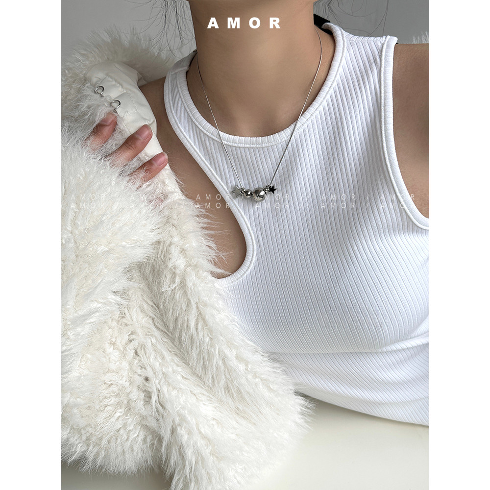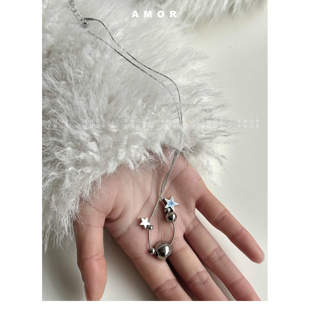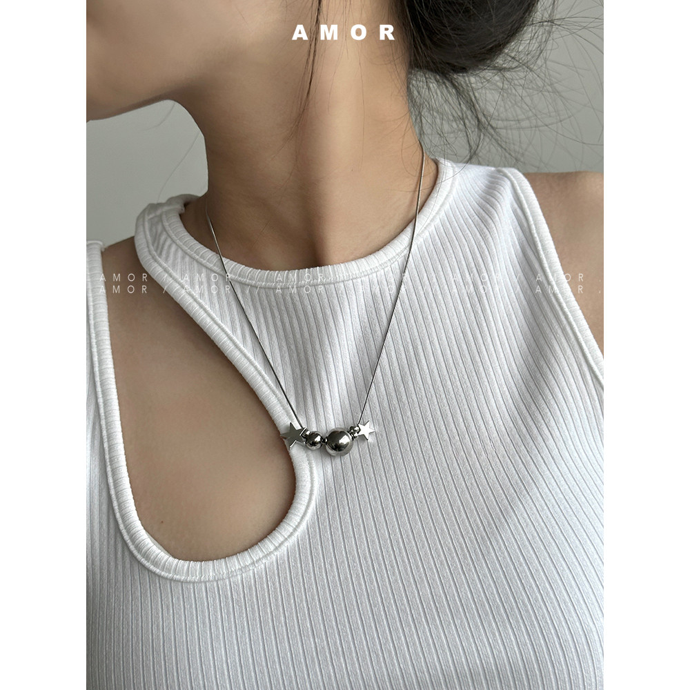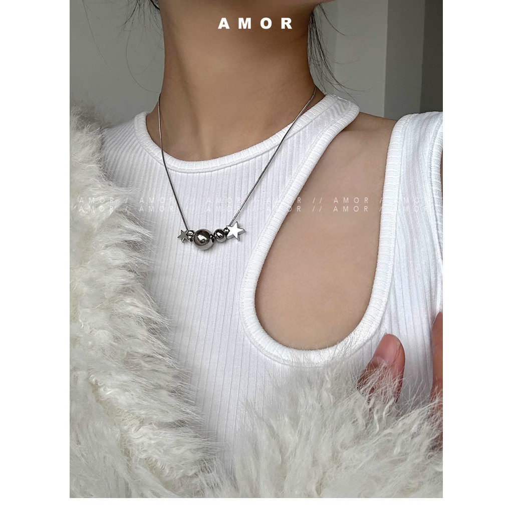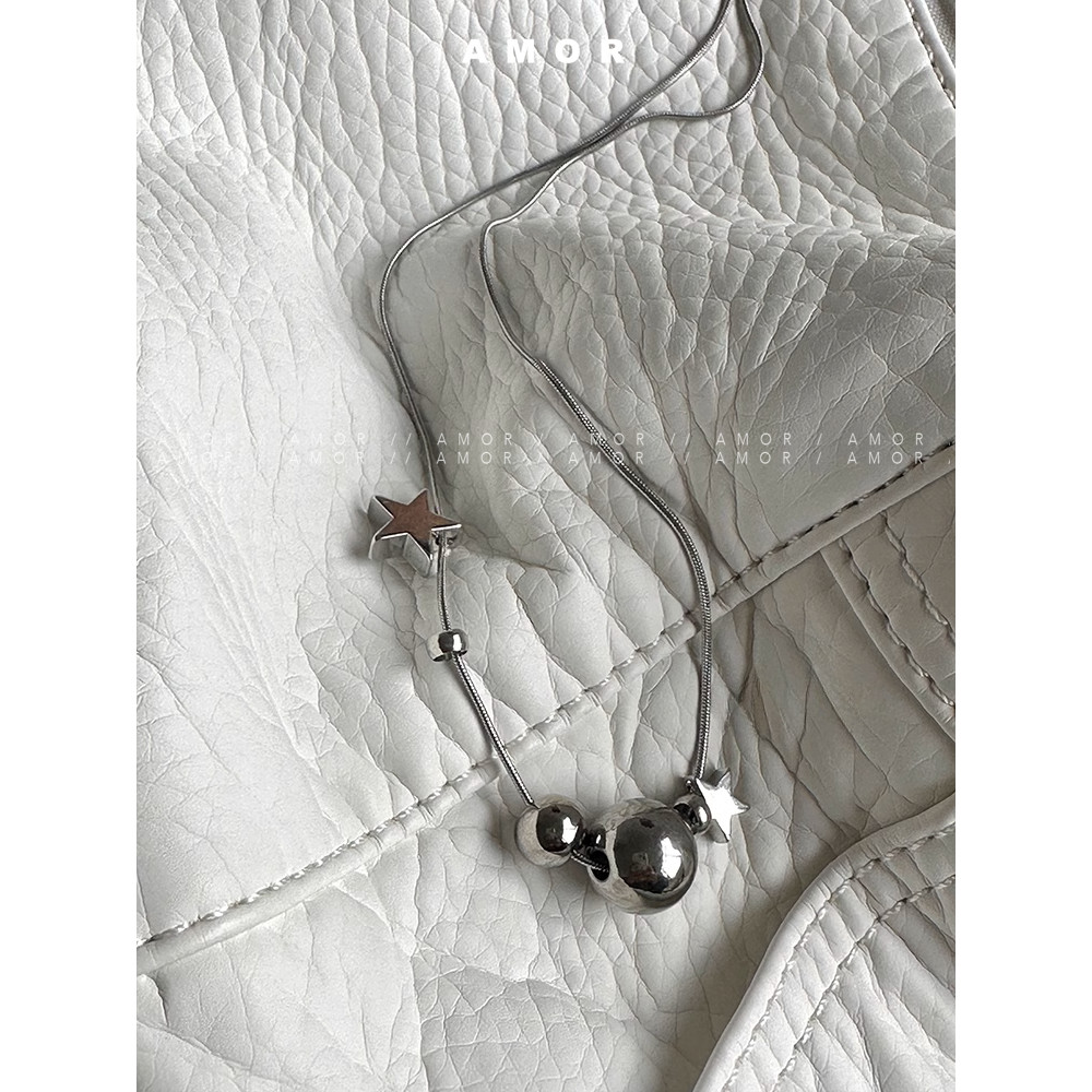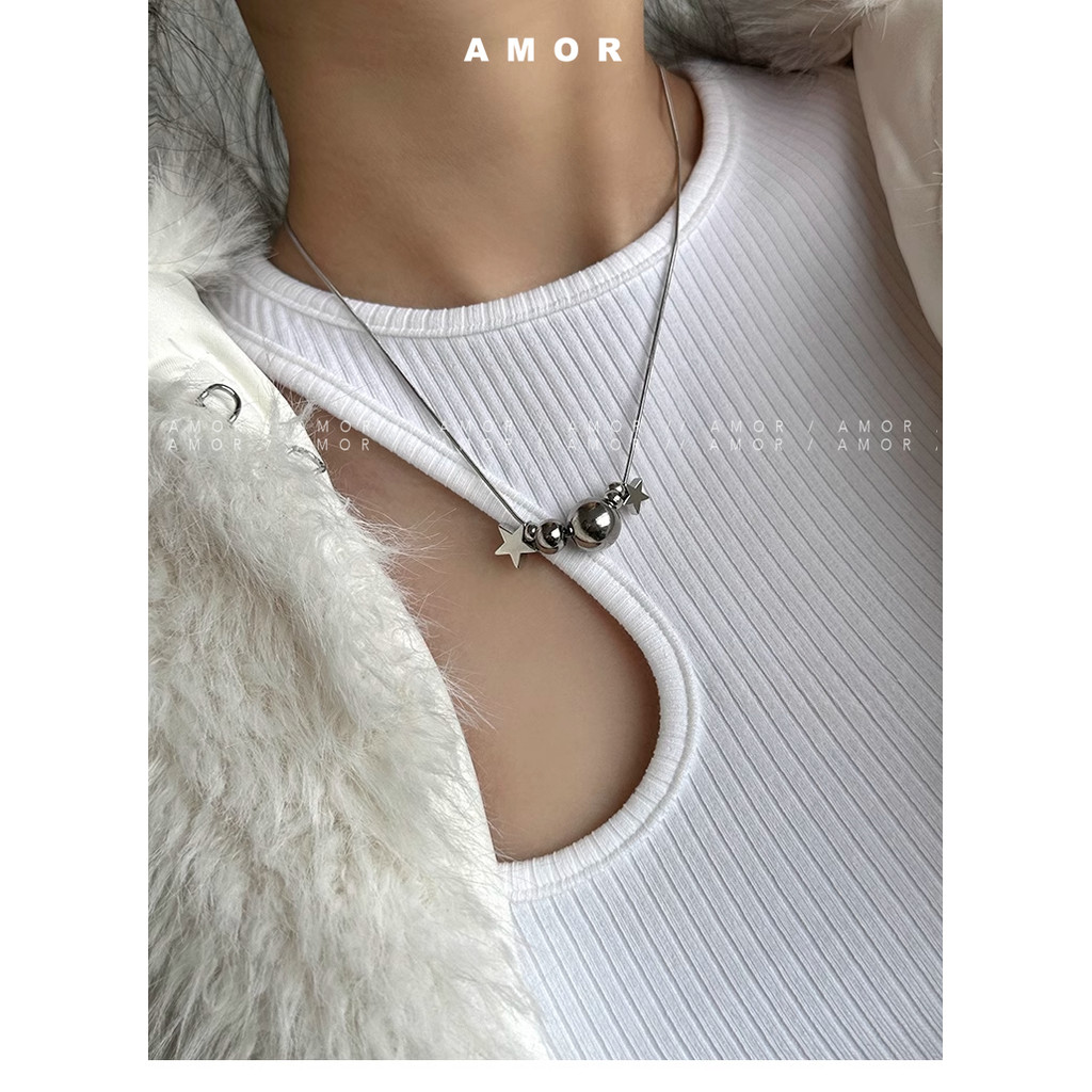 Thép không gỉ phong cách Hàn Quốc, không dị ứng, không rỉ sét, đơn giản và đa năng, vòng cổ ngôi sao bóng tròn Hàn Quốc, xương đòn, dây chuyền giác quan cao cấp, xích xương rắn