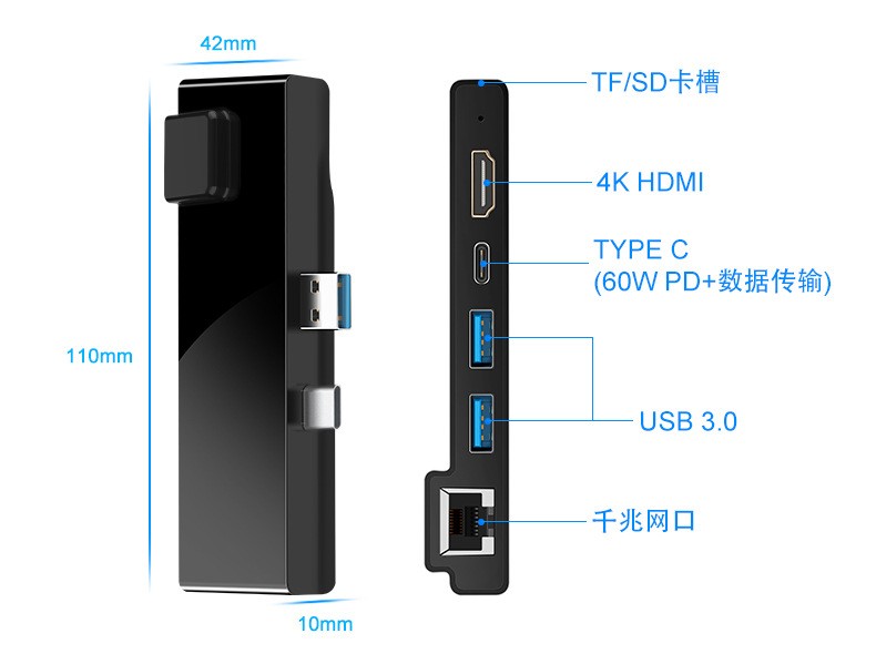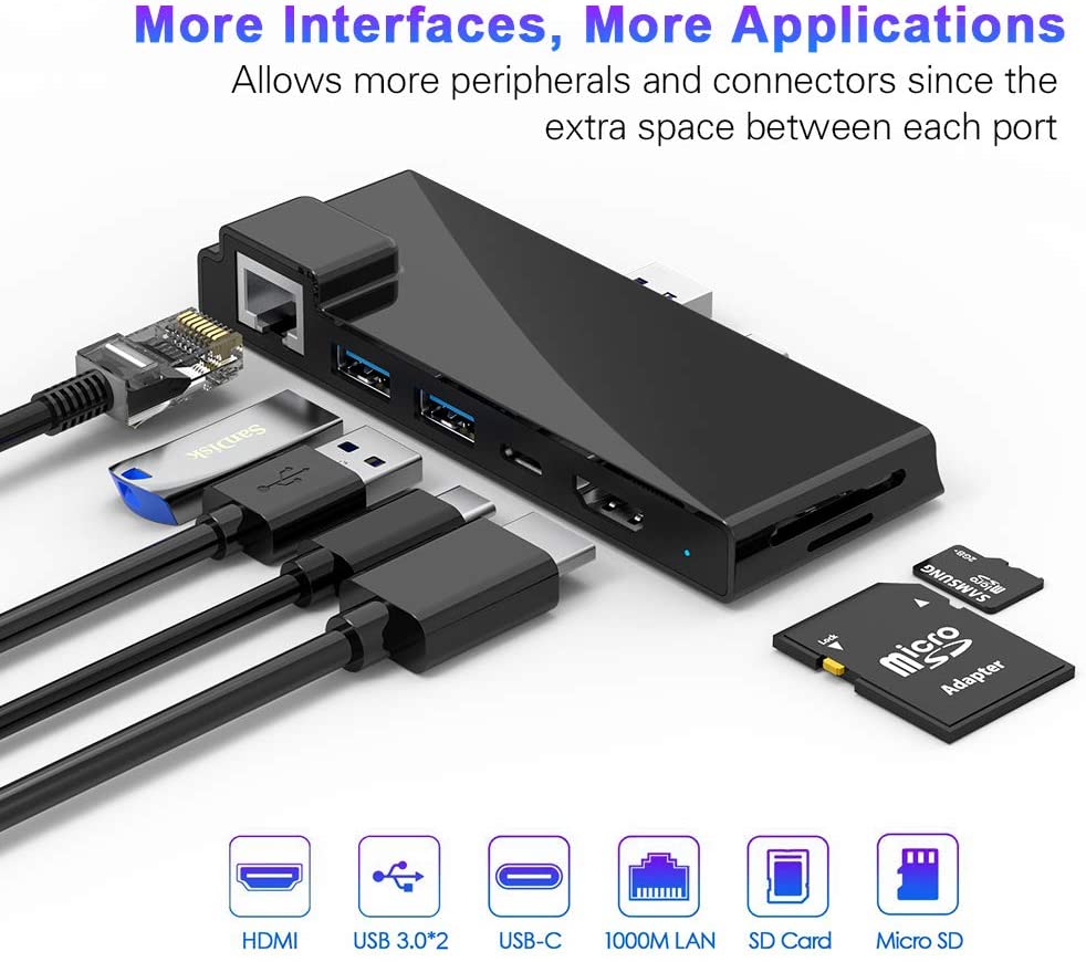 Trung tâm đế cắm Microsoft Surface Pro 7, Bộ điều hợp Surface Pro 2019 7 trong 2 với HDMI 4K, sạc USB C PD, 2 cổng USB 3.0 (5Gbps), Đầu đọc thẻ SD / TF, Trạm đế cắm Gigabit Ethernet LAN Pro 7