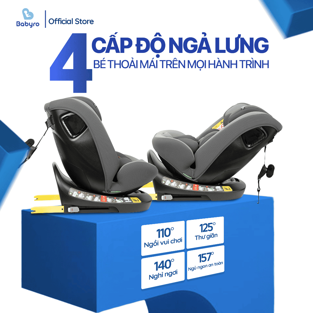 Ghế Ngồi Ô Tô Cho Bé BABYRO I-SPINSAFE ISOFIX Xoay 360 Chuẩn ECE-R129 Cho Em Bé Trẻ Em 0 1 2 3 4 5 6 7 8 9 10 11 12 Tuổi