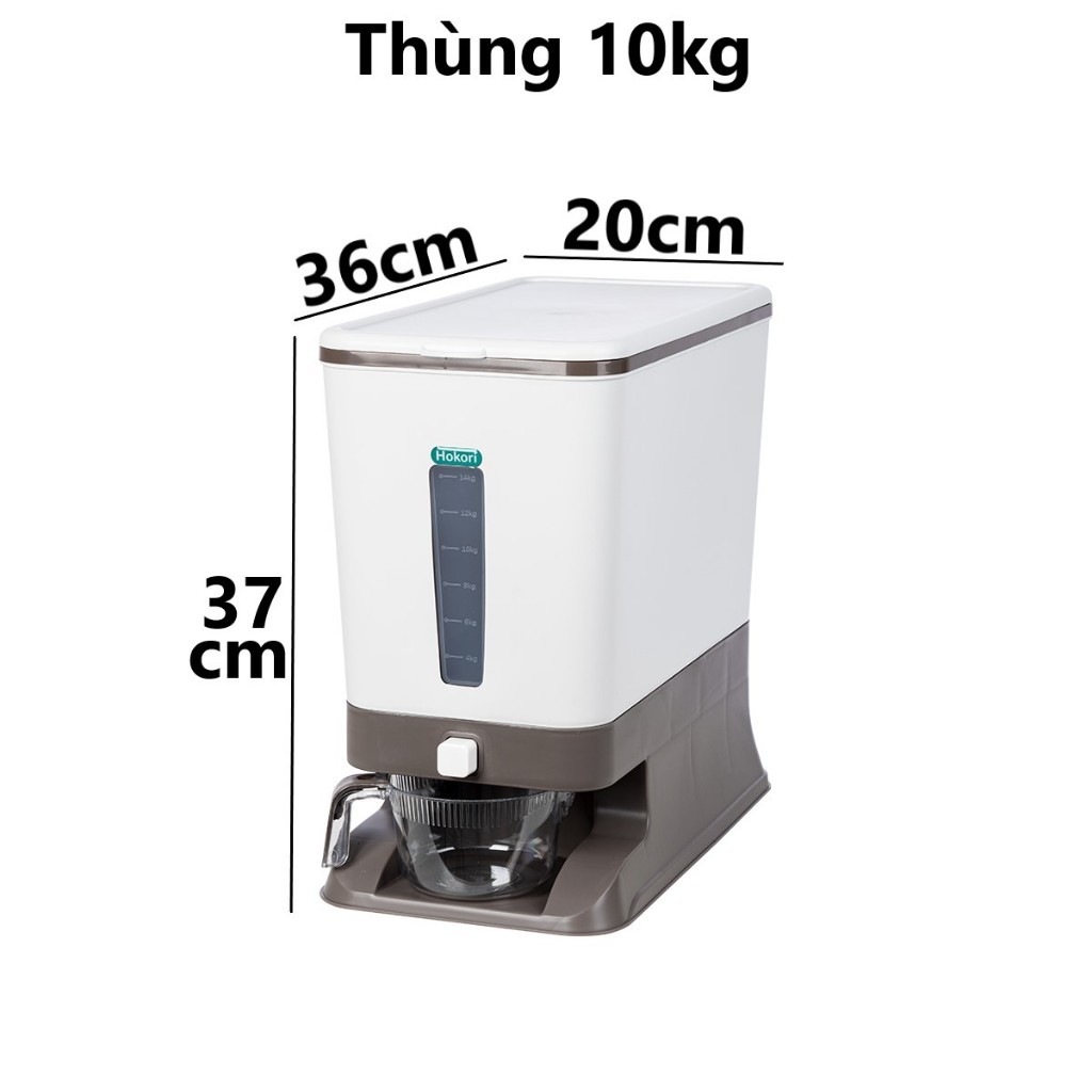 Thùng đựng gạo thông minh HOKORI nhựa VIỆT NHẬT cao cấp - 10kg, 20kg, ca đong, ấn nút lấy gạo 5338/9