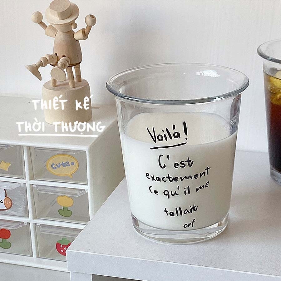 Ly Thuỷ Tinh Chữ "Voila" Xinh Xắn 350ml - Ly Uống Nước, Café, Sữa, Nước Ép, Decor Bàn Học, Decor Góc Chill Uống Café,..