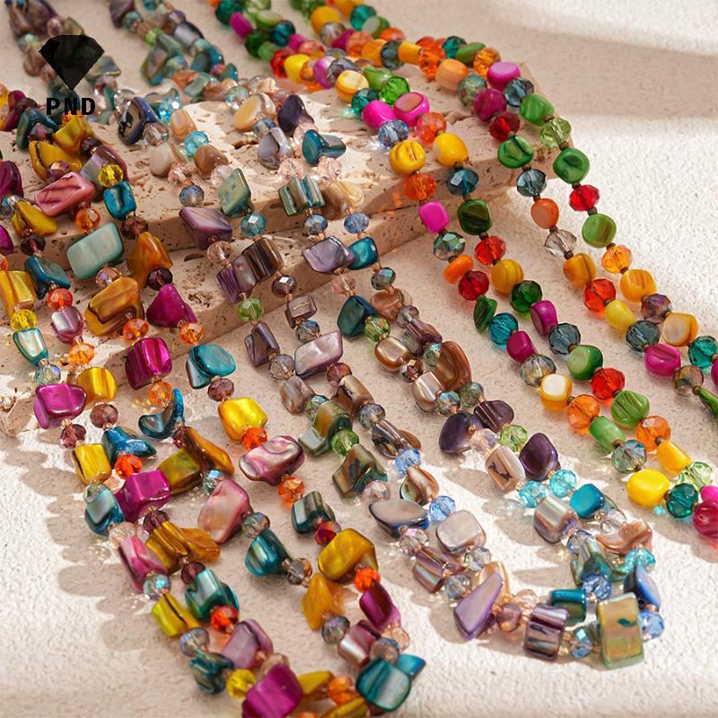 PND Vỏ vòng cổ boho hai lớp nhiều màu sắc, hạt vintage không đồng đều, phù hợp làm quà tặng dịp nghỉ hè và ngày lễ