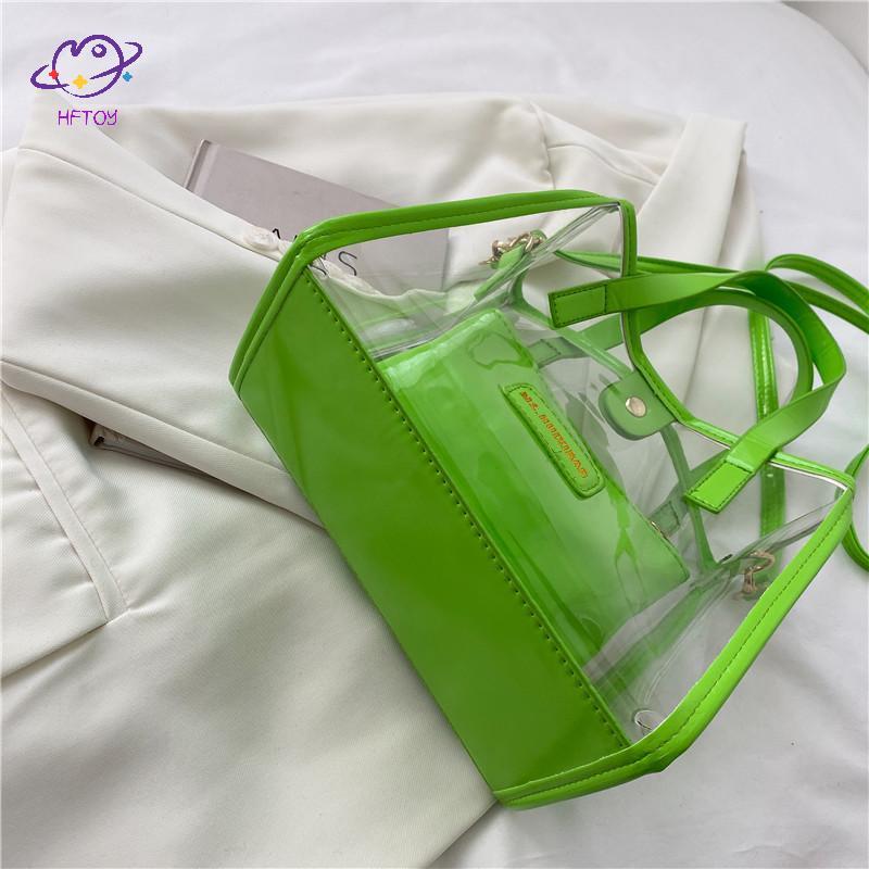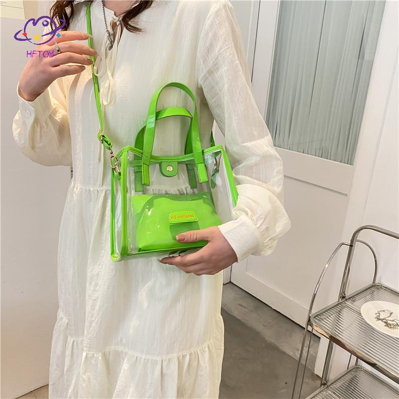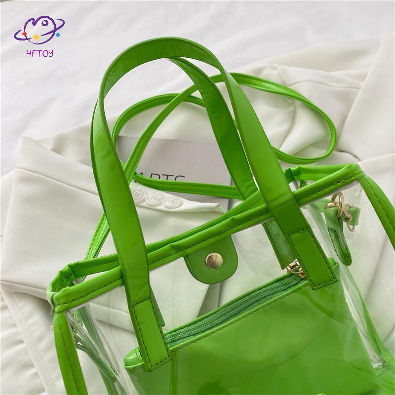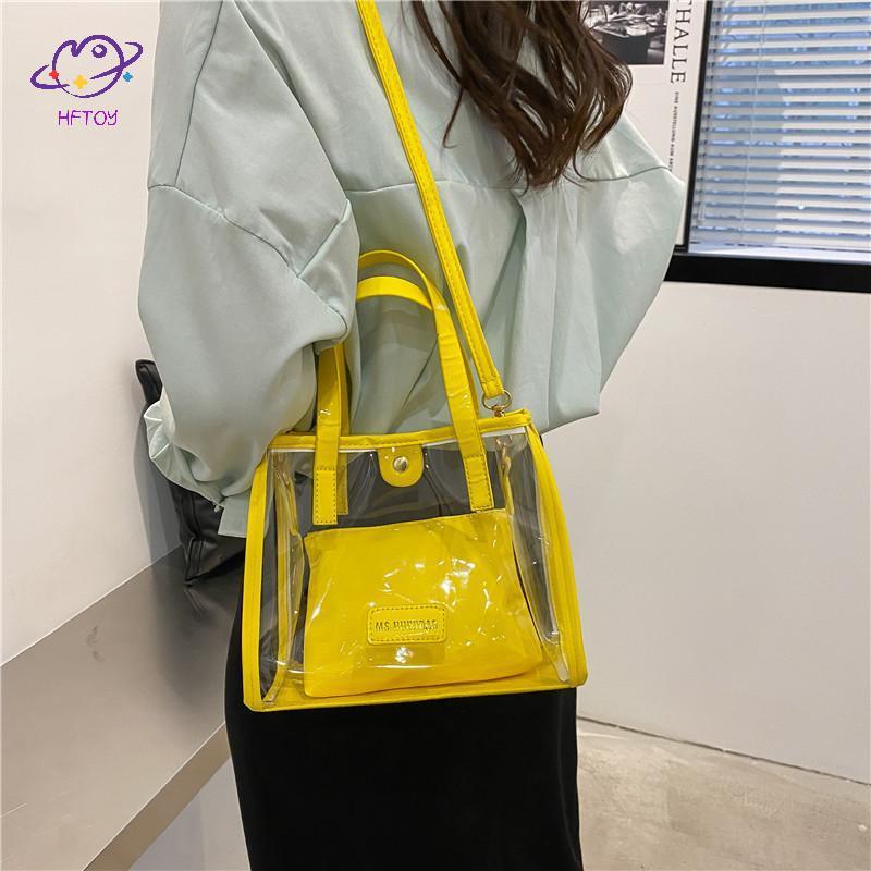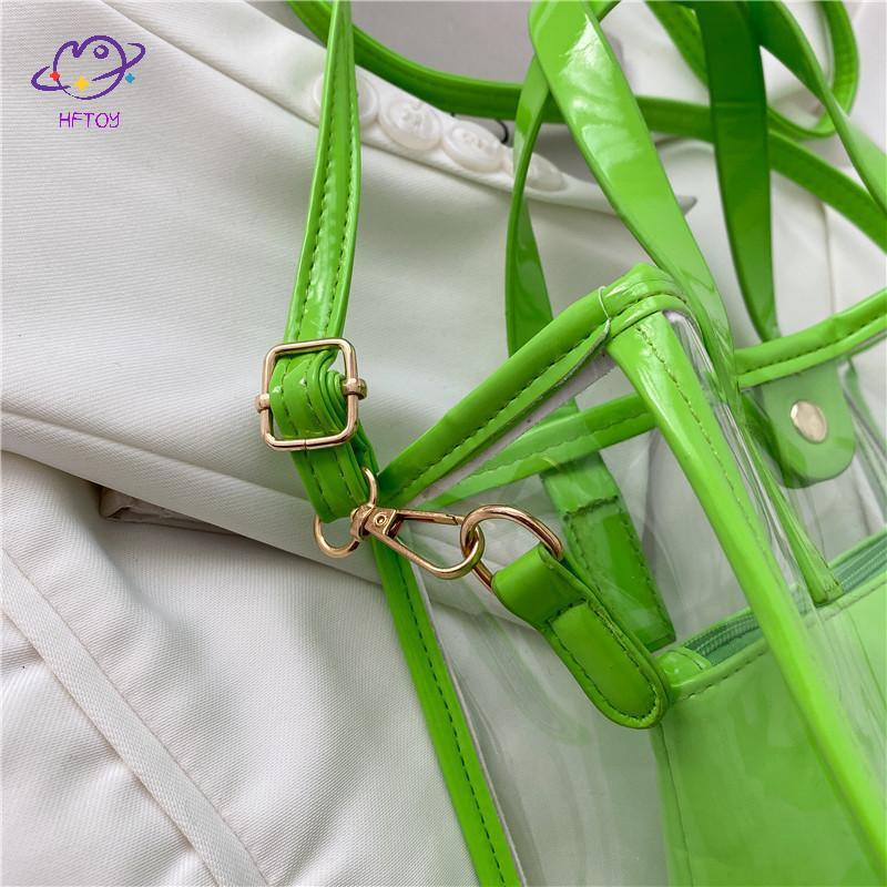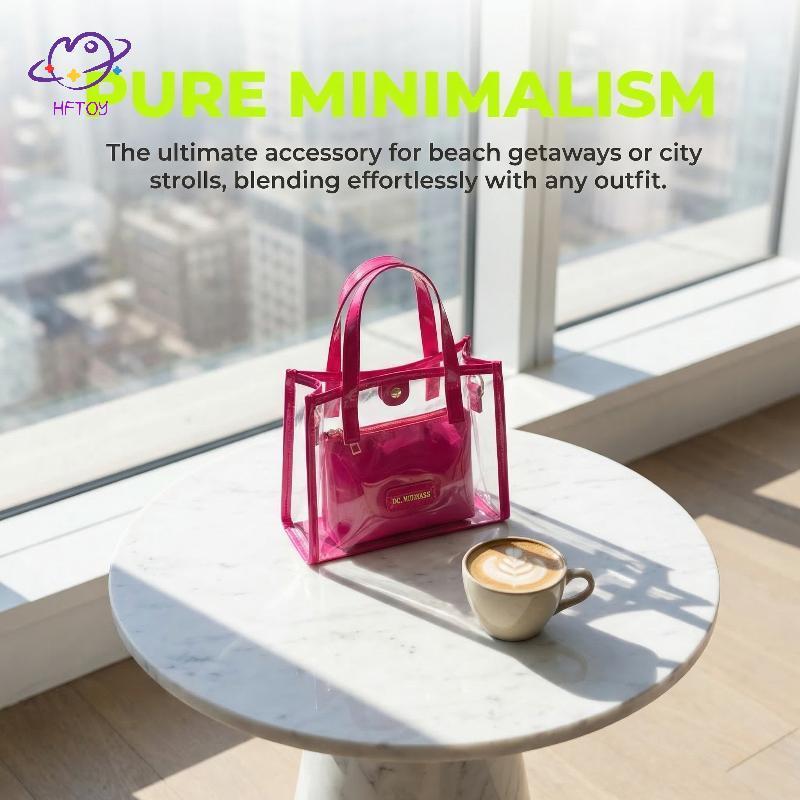 HFTOY Thời Trang Trong Suốt Túi Tote PVC Jelly Beach Túi Xách Trong Suốt Chống Thấm Nước Ví Lớn Cho Nữ Kỳ Nghỉ Dã Ngoại ~