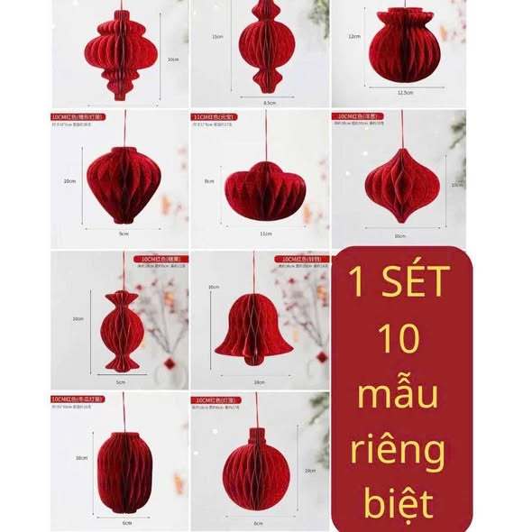Đèn lồng tổ ong, sét 10 quả cầu giấy decor Tết 2026, lồng đèn trang trí đỏ trang trí cực xinh, chất liệu giấy cao cấp