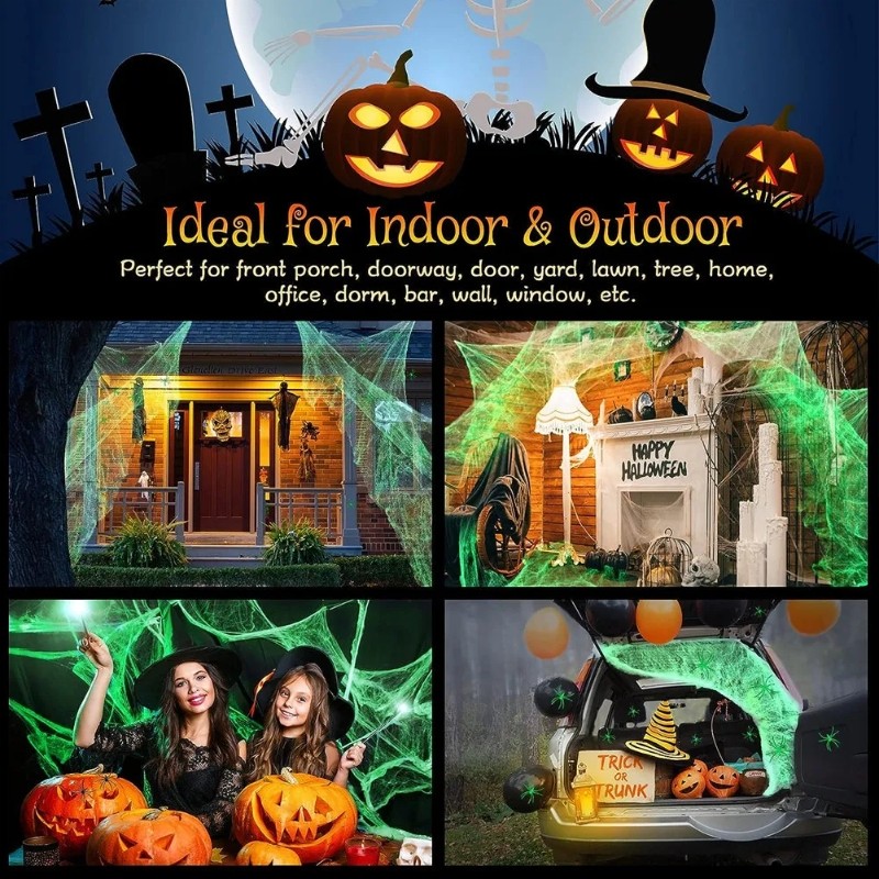 Mạng nhện dạ quang Mạng nhện nhân tạo co giãn với nhện giả Đồ trang trí Halloween