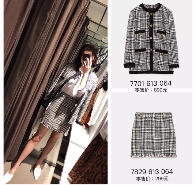 Chân váy zara dạ tweed