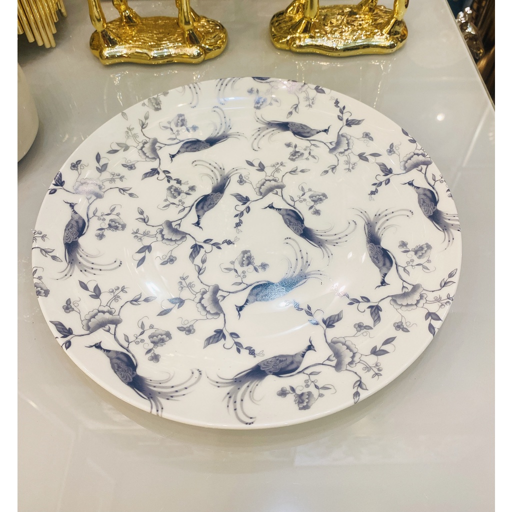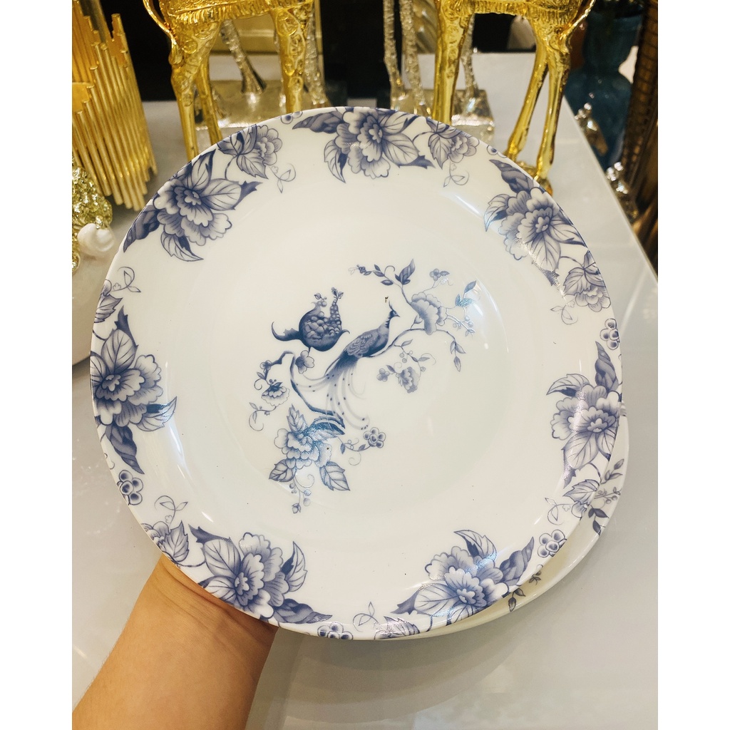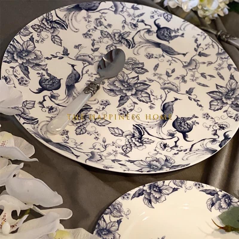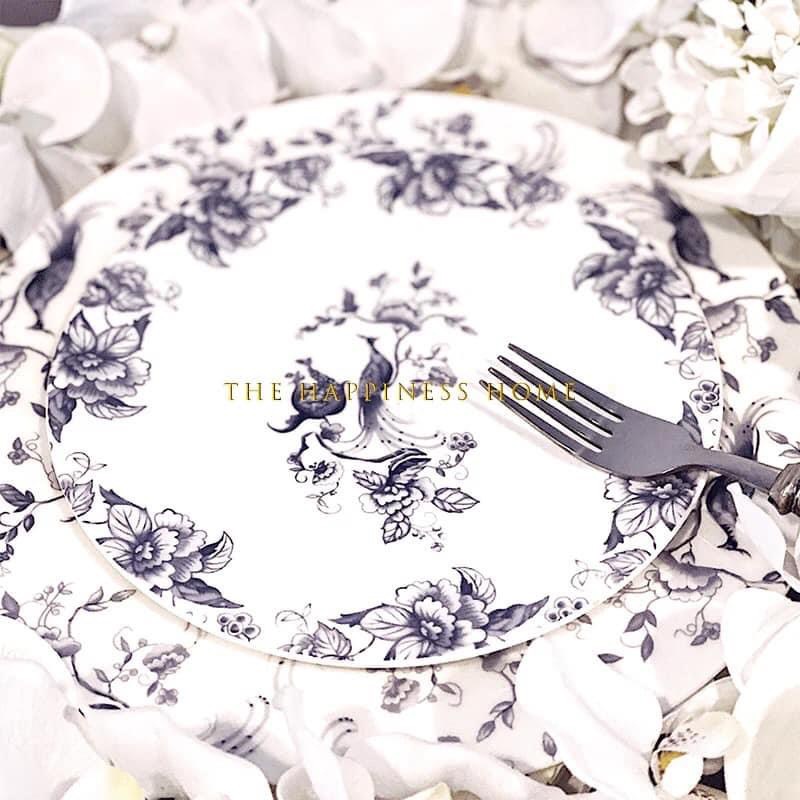 Đĩa phong cách Bắc Âu sang trọng, viền vàng, ăn tiệc cao cấp, để salad, ăn chính,hoa văn công xanh tinh tế