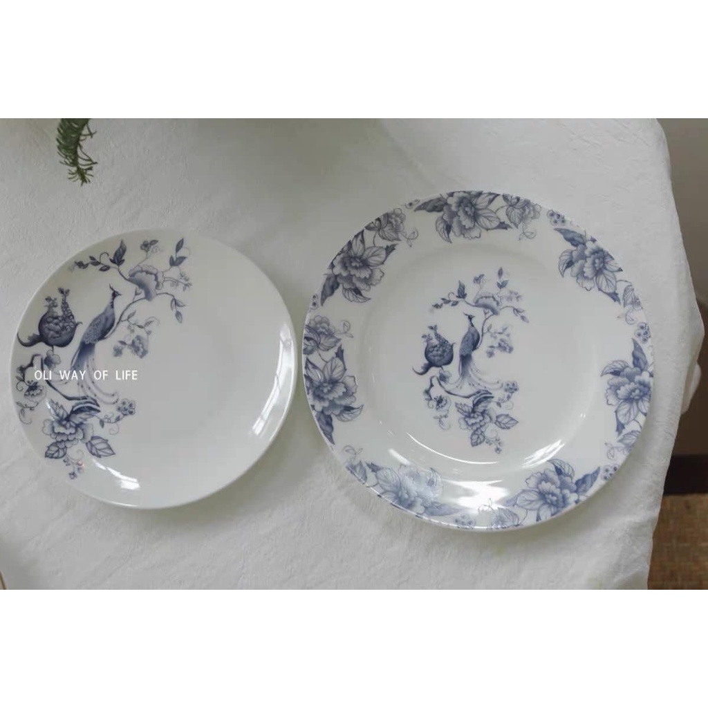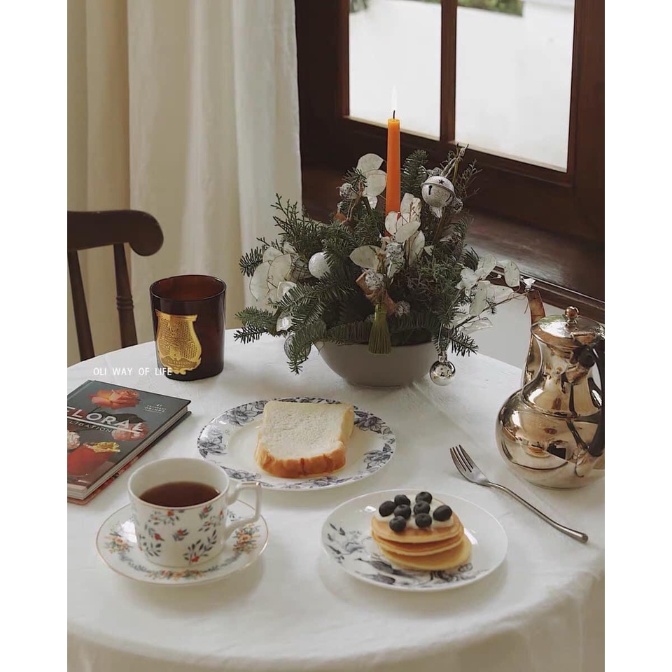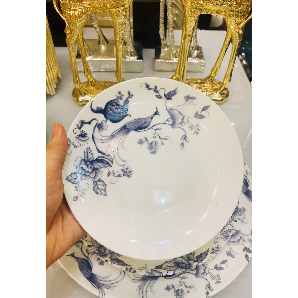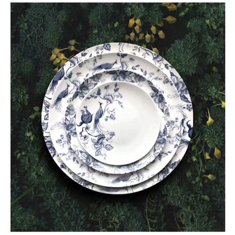 Đĩa phong cách Bắc Âu sang trọng, viền vàng, ăn tiệc cao cấp, để salad, ăn chính,hoa văn công xanh tinh tế