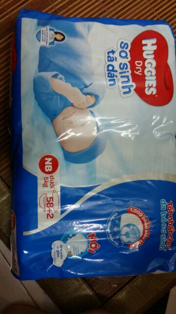 Tã dán sơ sinh huggies size Newborn -NB 58+2 miếng/ bịch (3-5kg)