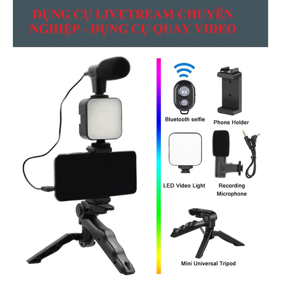 Dụng cụ livetream, quay video chuyên nghiệp kèm mic, đèn hỗ trợ tối đa