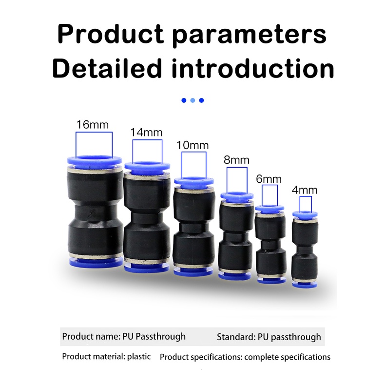Đầu Nối Ống Khí Nén Bằng PU PE 4mm 6mm 8mm 10mm 12mm 16mm