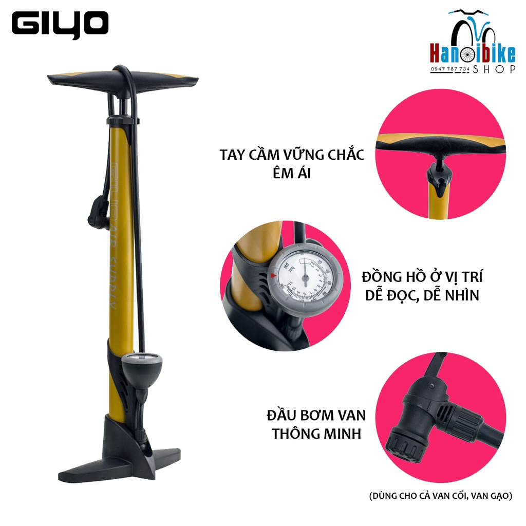 Bơm xe đạp Giyo GF-33P mẫu van đa năng 2 trong 1