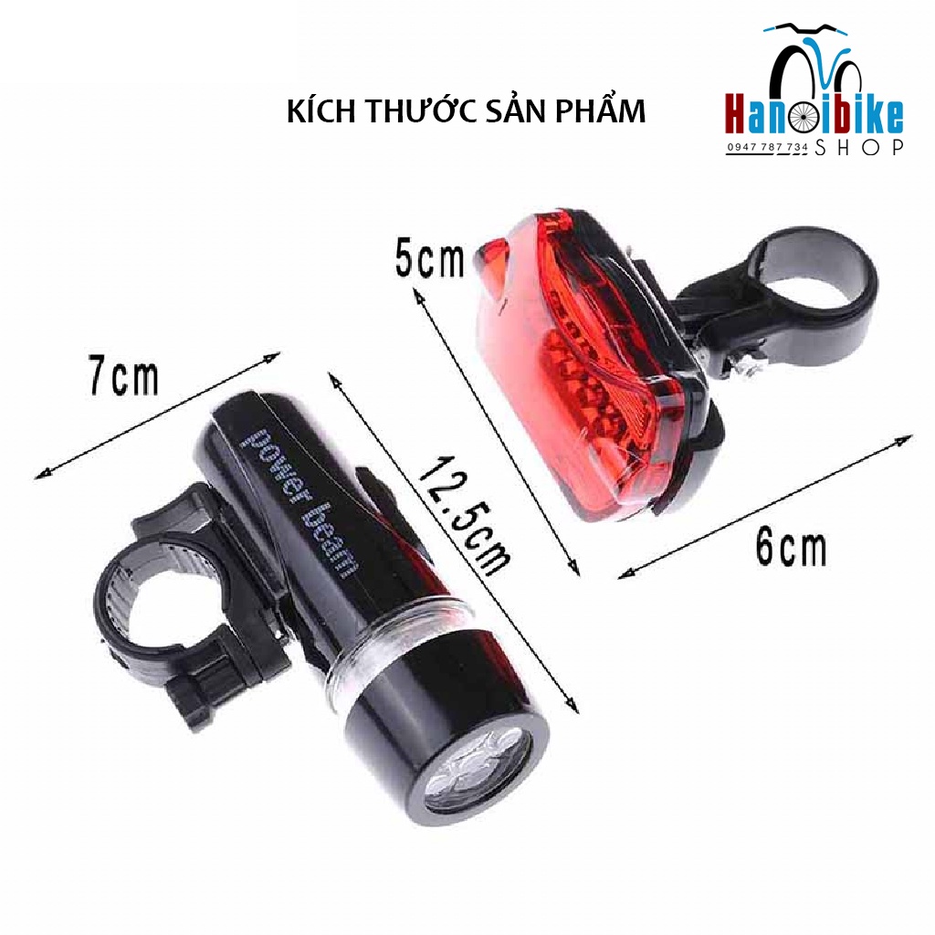 Combo đèn trước+sau cho xe đạp thương hiệu Power beam WJ-101