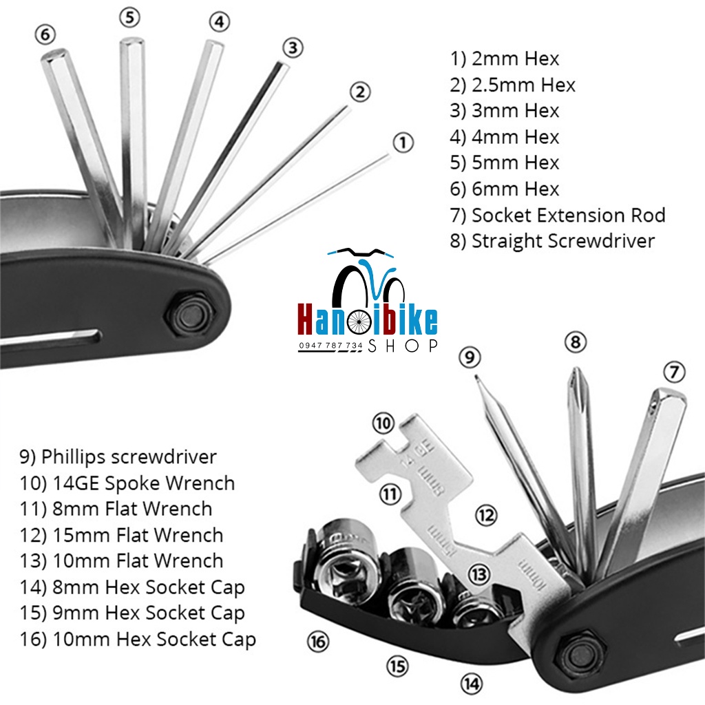 Bộ lục giác sửa chữa xe đạp 16 chức năng