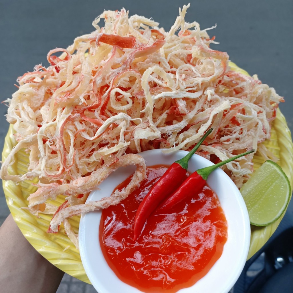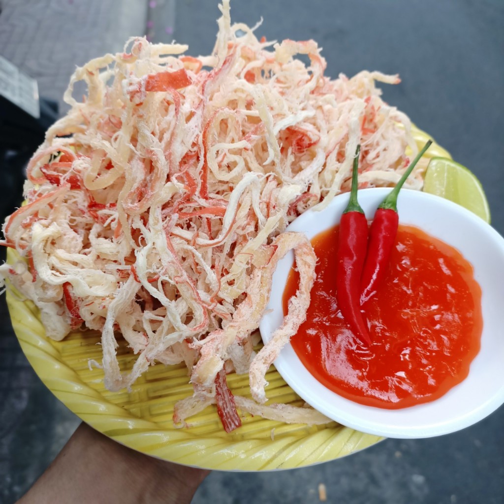 Đồ Ăn Vặt Khô Mực Hấp Nước Dừa Xé Sợi Túi Zip 500gr Cân Đủ Kèm Tương Ớt