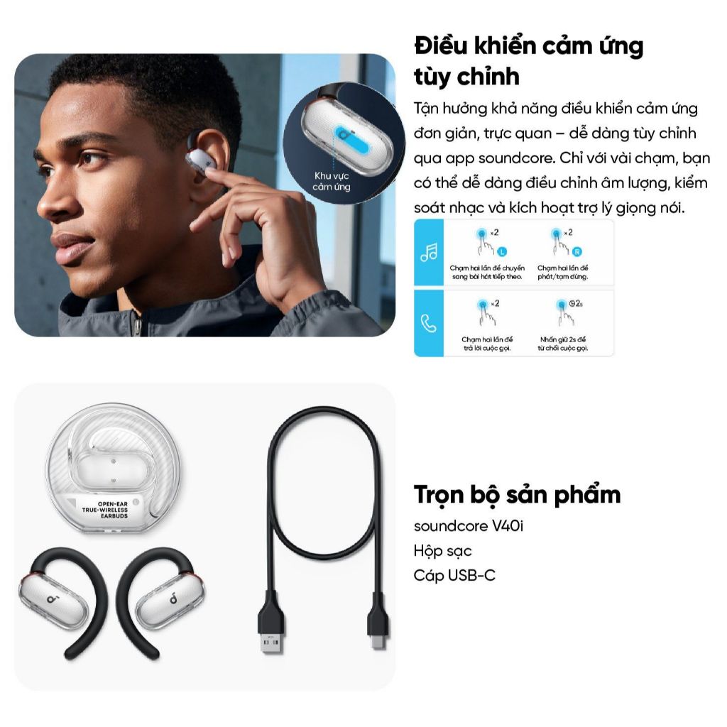 Tai nghe bluetooth Open-Ear Soundcore V40i Anker A3878 chính hãng. Bảo hành 18 tháng, 1 đổi 1 15 ngày.