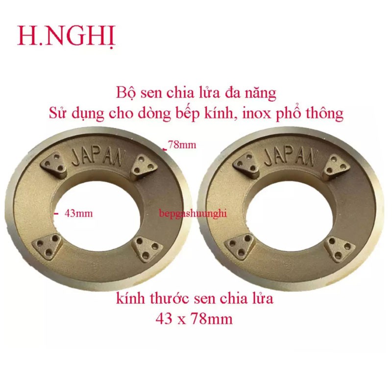 Combo 2 đầu đốt, mâm chia lửa bếp ga, sen chia lửa bằng đồng nhập khẩu 43x78mm