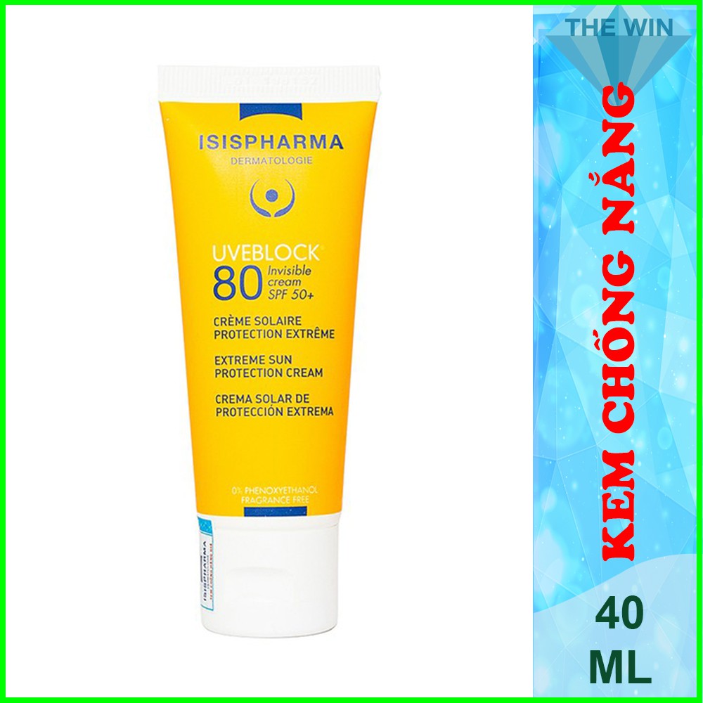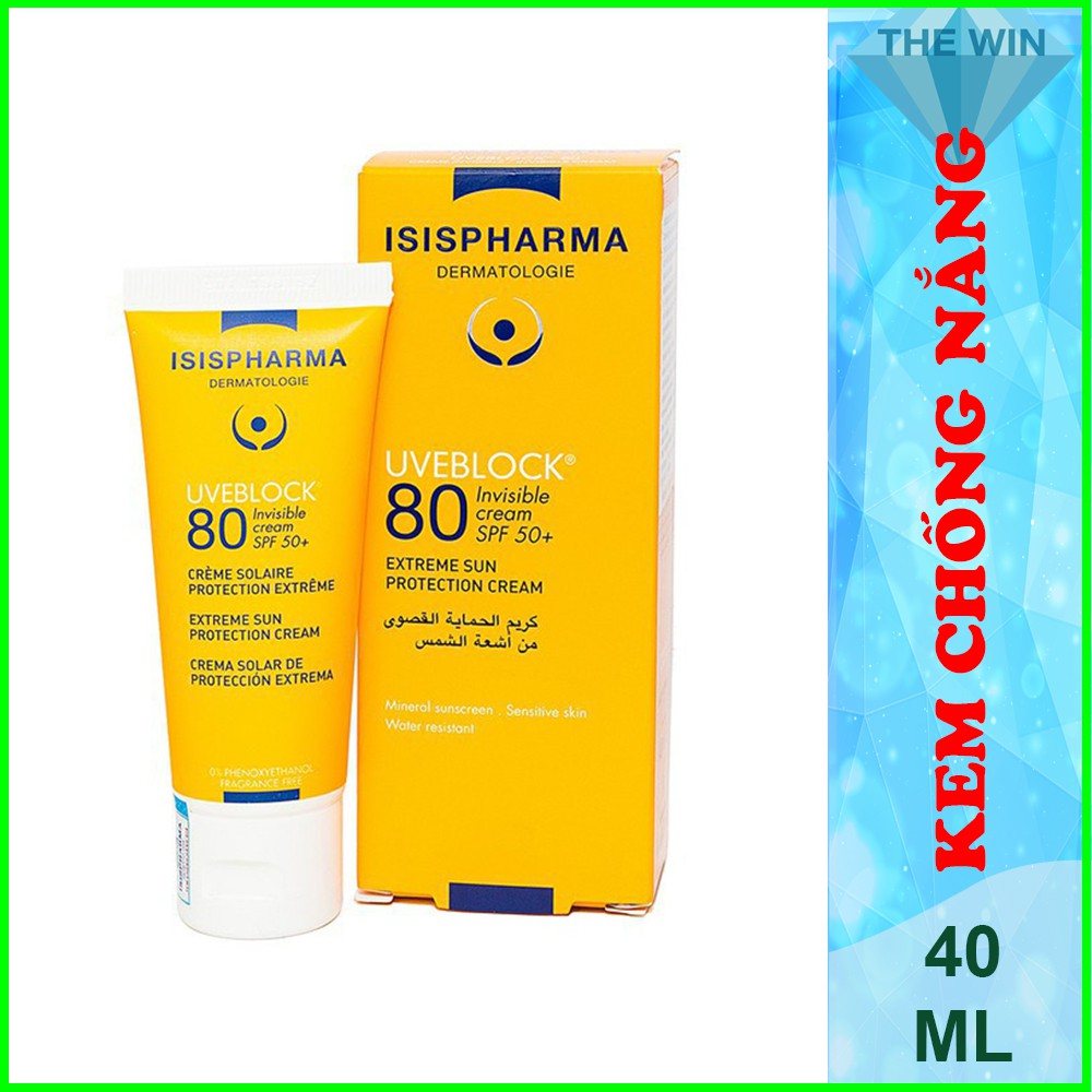 [Bb126]Kem Chống Nắng Bảo Vệ Da Tối Đa Uveblock SPF 80 Invisible - ISIS Pharma 40ml Chính Hãng