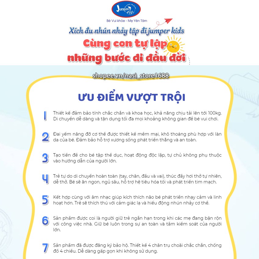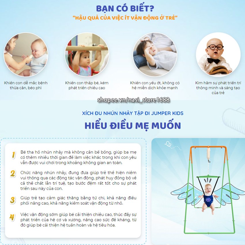 Xích đu nhún nhảy tập đi cho bé Jumper Kids JPK102 bảo hành chính hãng đến 2 năm