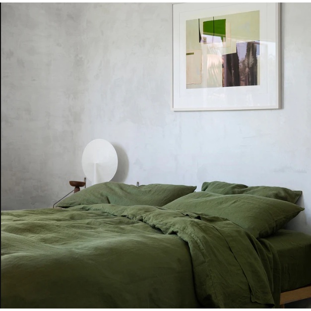 Set ga giường cao cấp linen premium 100% màu xanh lá cực đẹp anam home and bedding