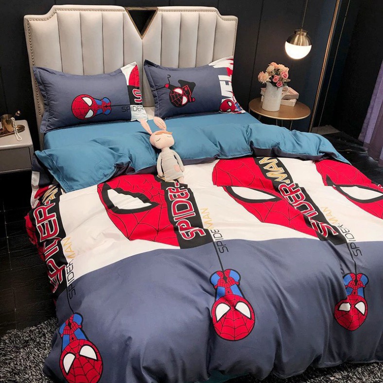 Bộ chăn ga poly Cotton 3D mẫu HOẠT HÌNH NGƯỜI NHỆN SPIDER-MAN hàng nhập khẩu 4 món, đủ size